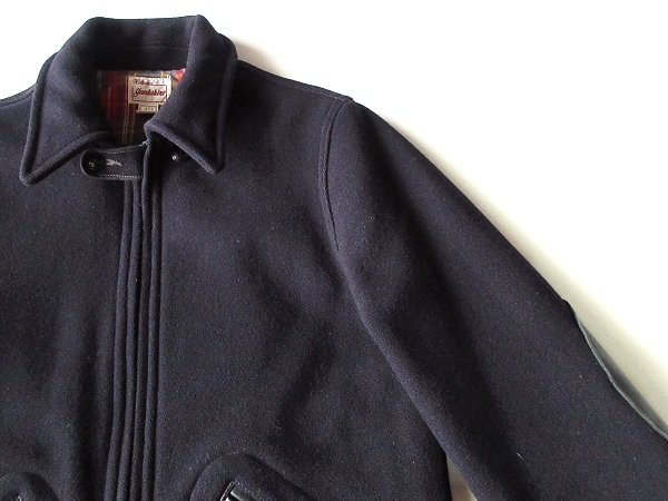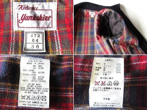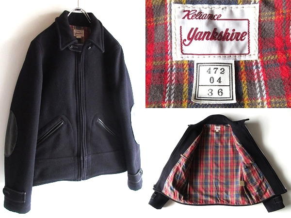 YANKSHIRE ヤンクシャー チンスト付 レザーエルボーパッチ チェック裏地 ウールメルトン スポーツジャケット ブルゾン 36 定価52800円
