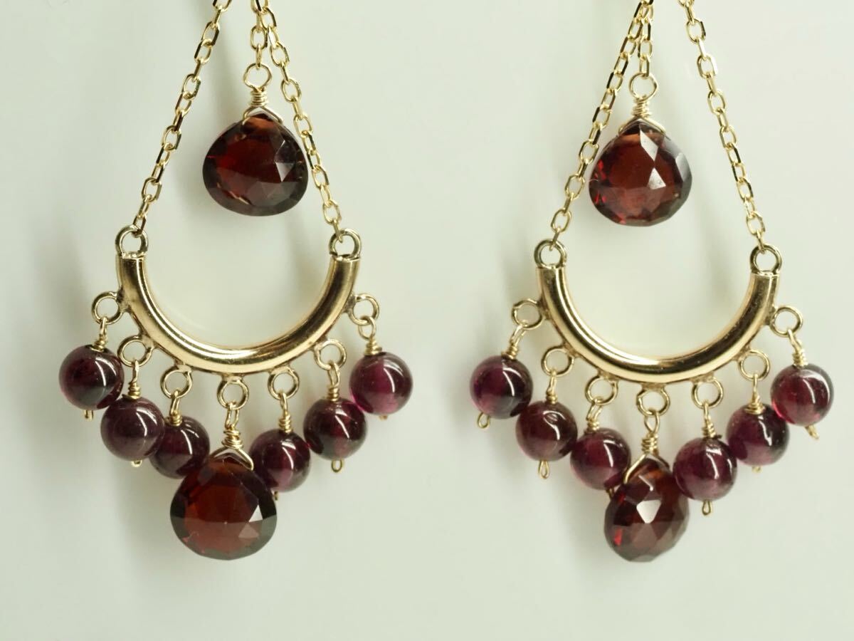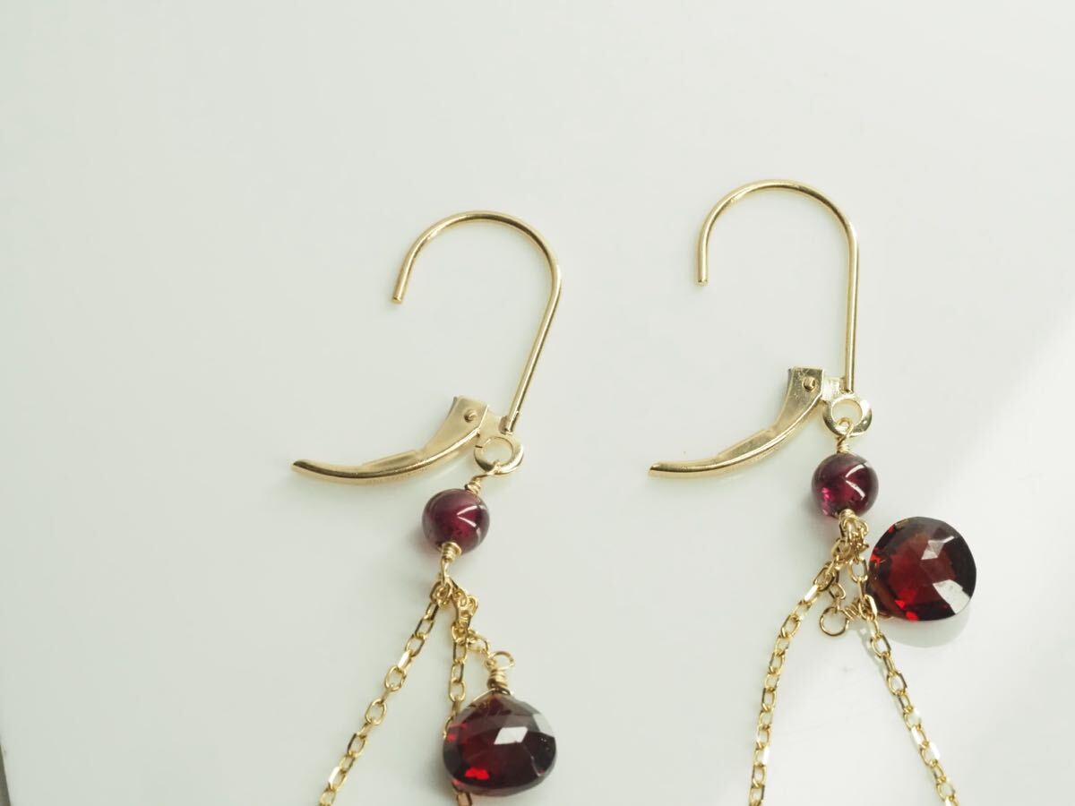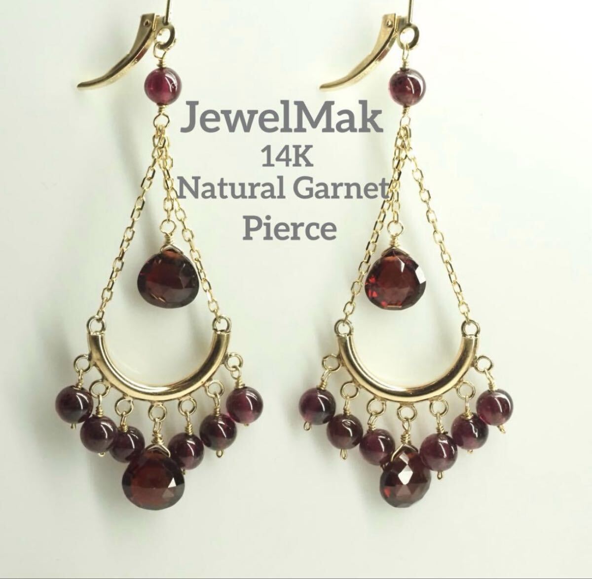 JewelMak★お洒落な14KYG 天然ガーネット シャンデリア ピアス ogi
