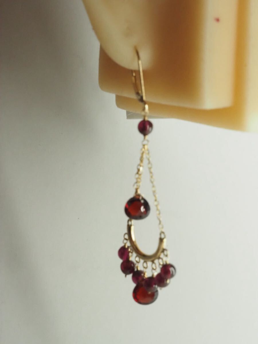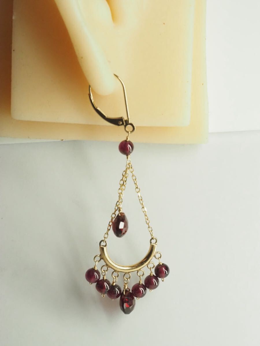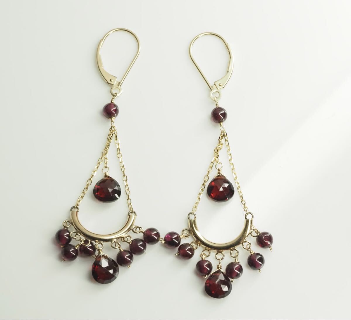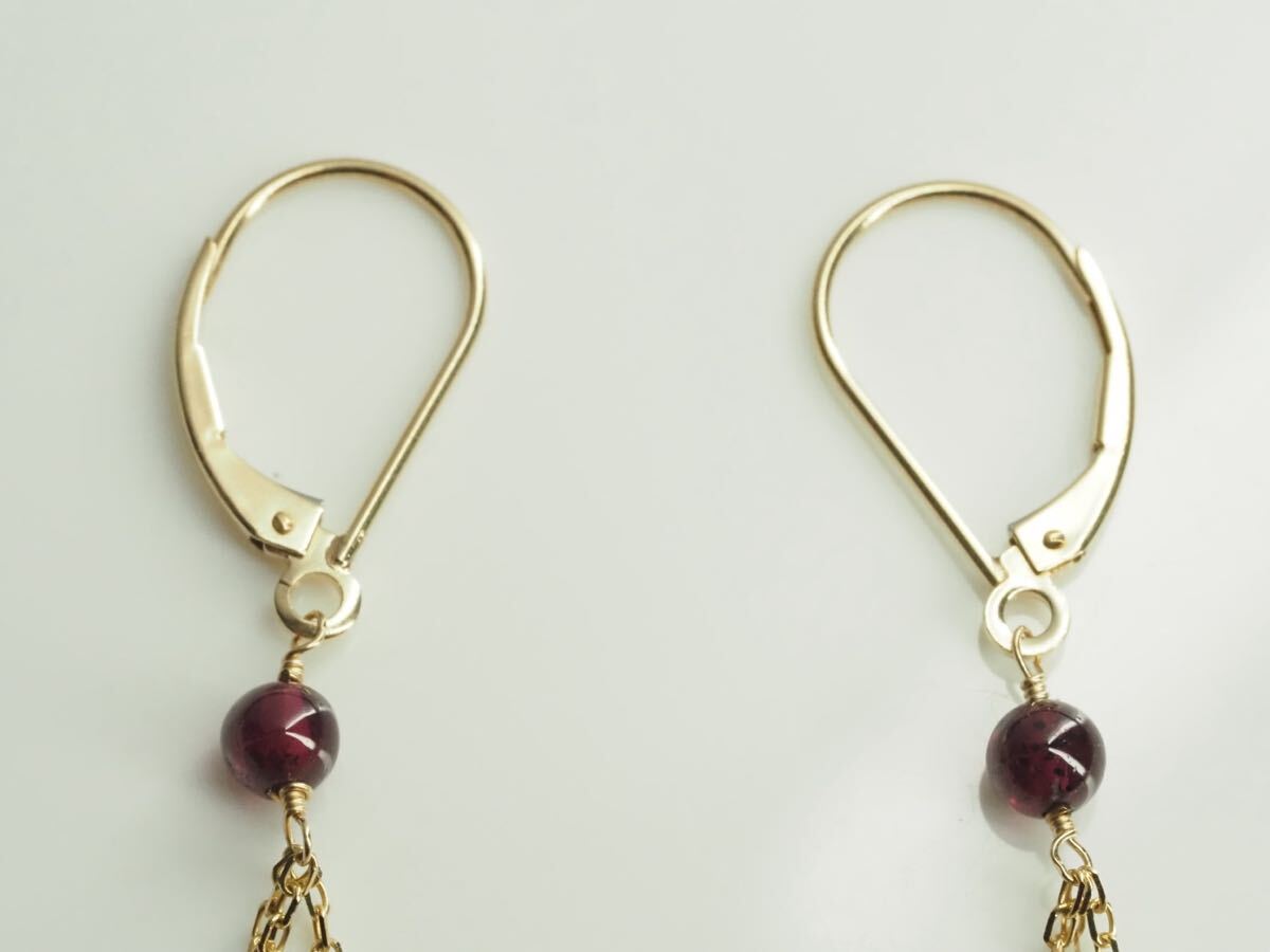 JewelMak★お洒落な14KYG 天然ガーネット シャンデリア ピアス ogi