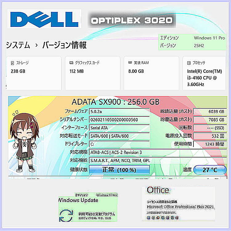 DELL OTIPLFX 3020 ★Windows11★お値打ちな1台! ★SSD/256GB ★memory8GB |