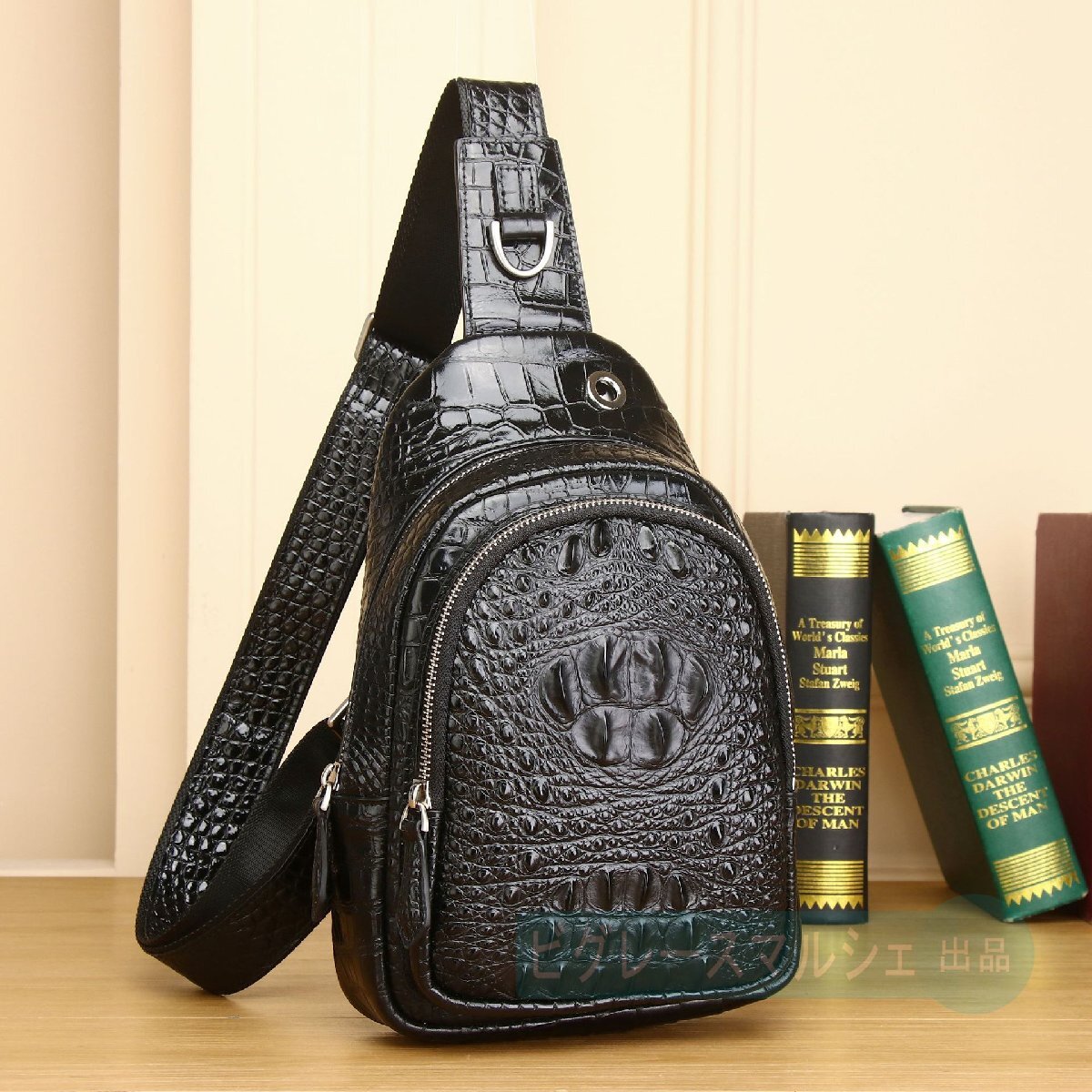 新品 クロコダイル本革 ワニレザー メンズバッグ 斜め掛け ボディバッグ 大容量 本革 センター取り アウトドア スリングバッグ hw1424