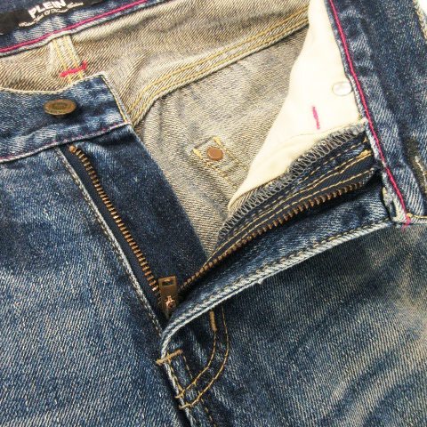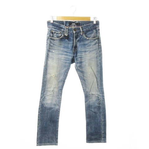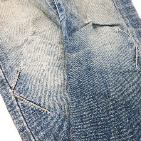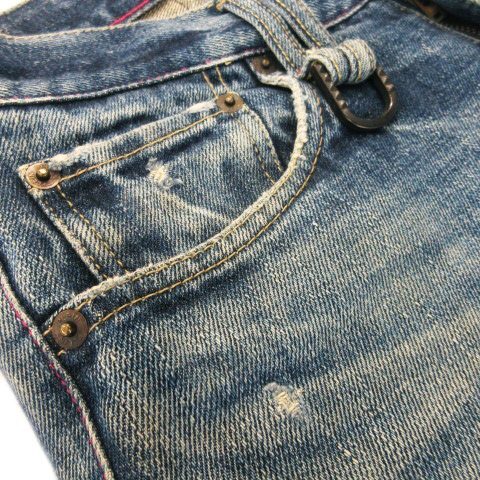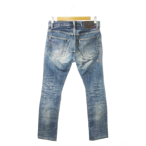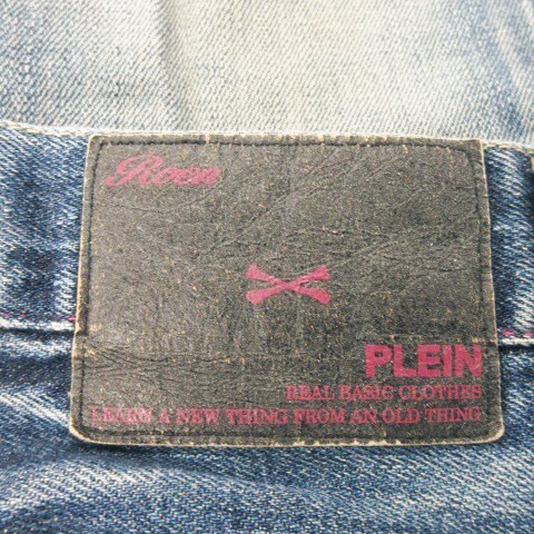 ロエン Roen × プレーン PLEIN デニムパンツ ジーンズ テーパードパンツ ウォッシュ加工 ダメージ加工 スカル 1 S 青 ブルー