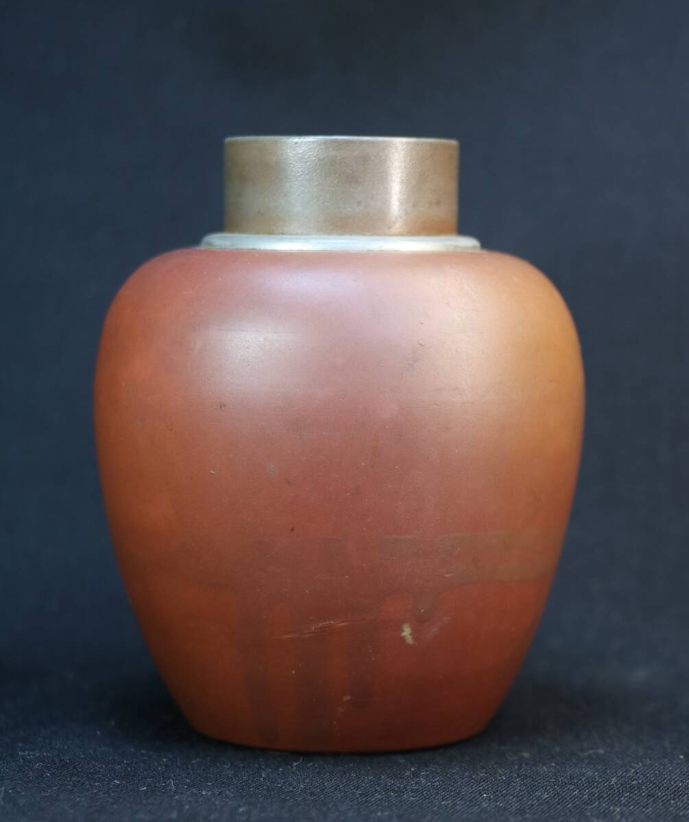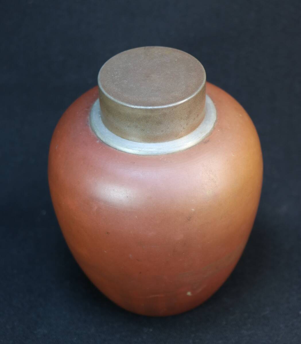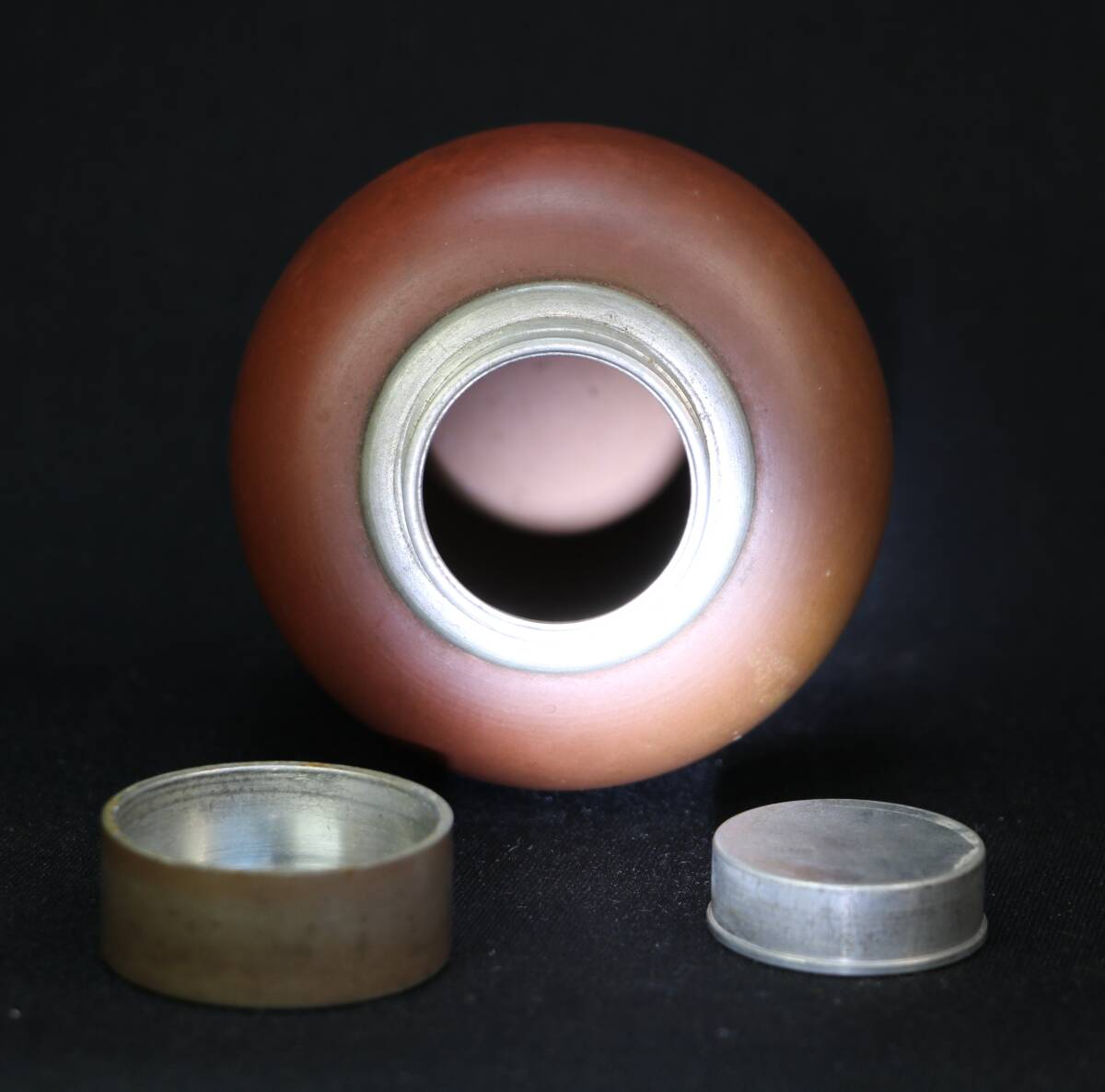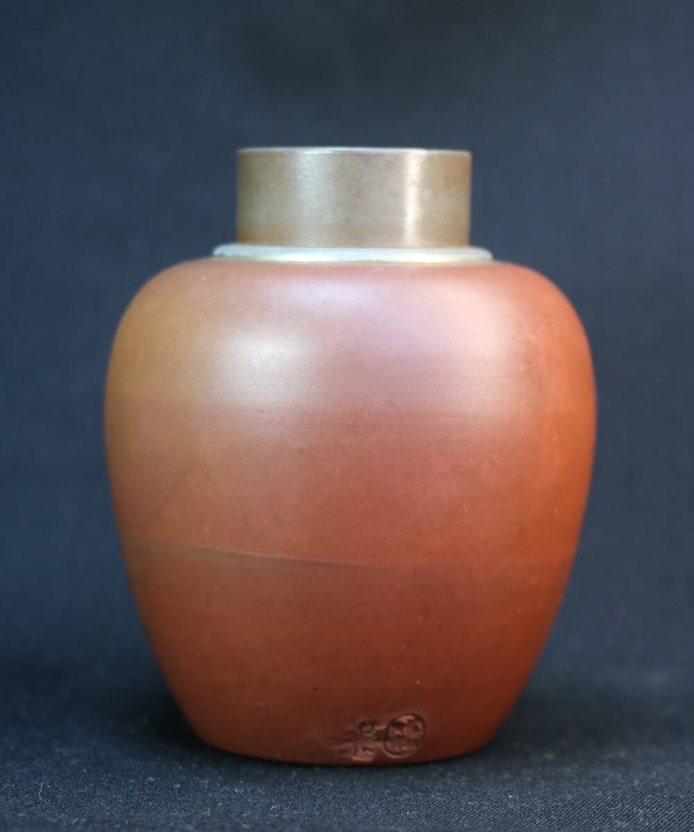 久本葛尾作【錫口茶入】虫明焼「備前陶森/葛尾」陶印あり