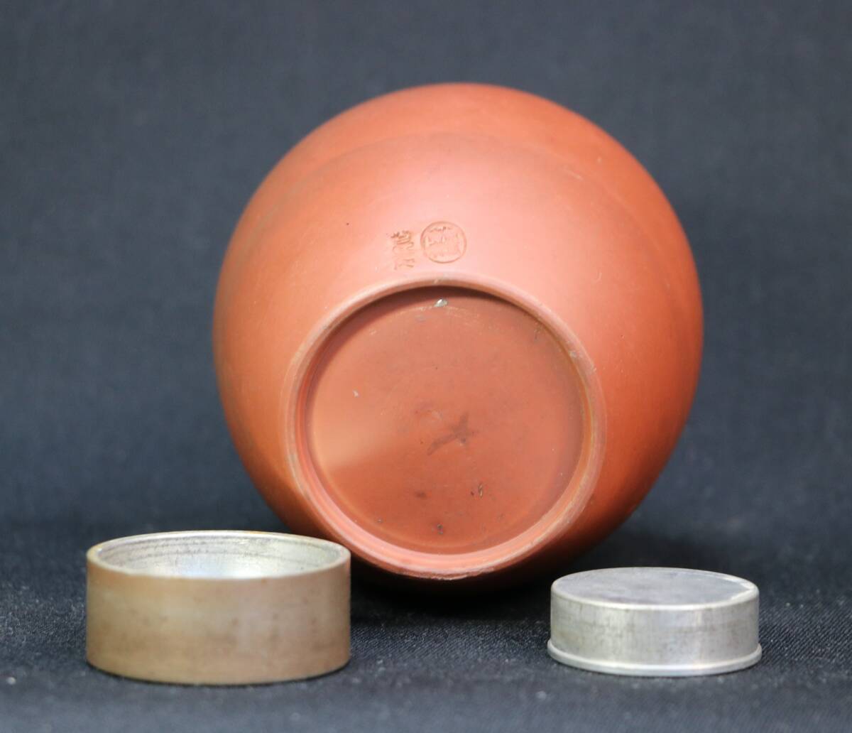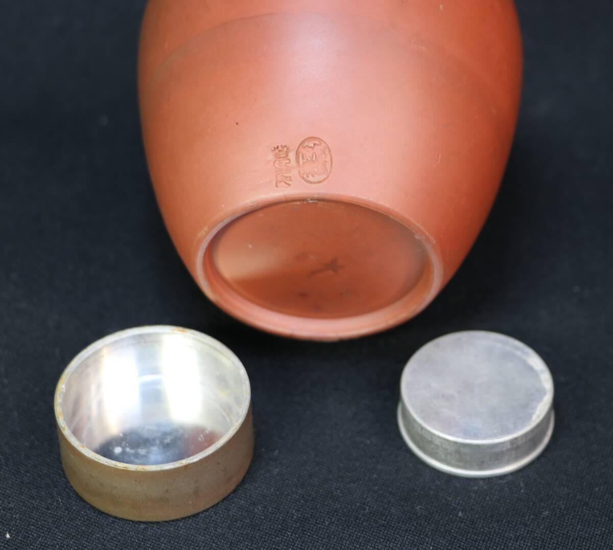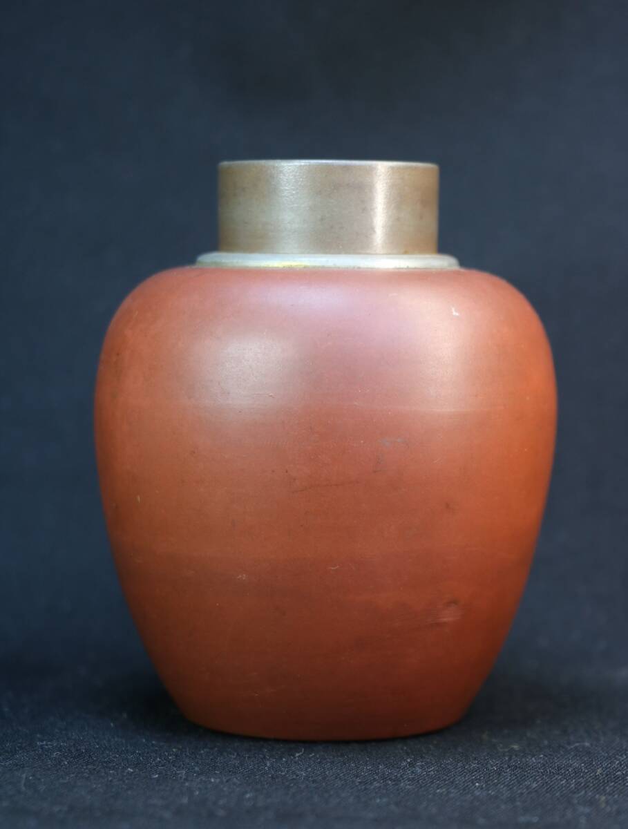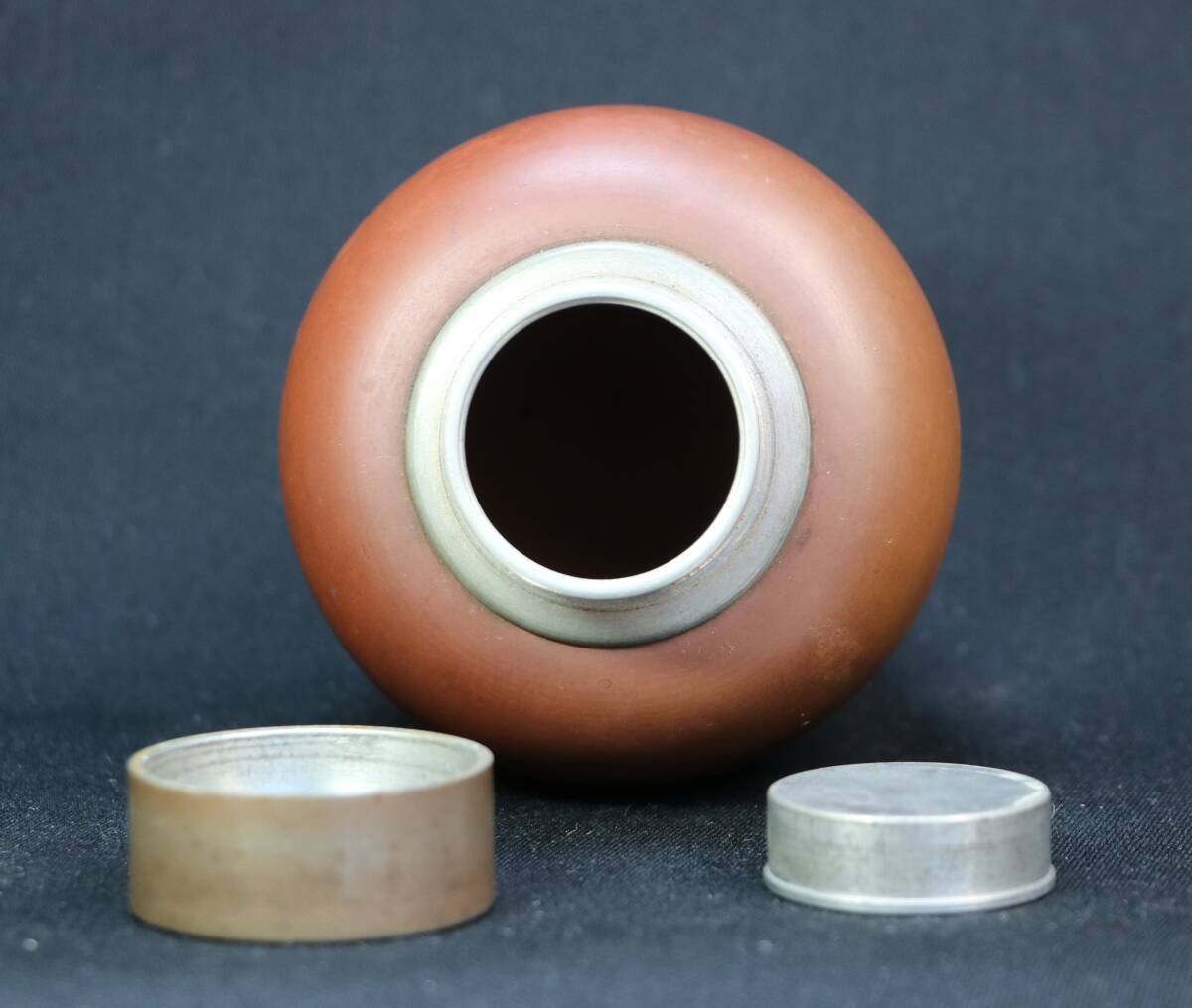 久本葛尾作【錫口茶入】虫明焼「備前陶森/葛尾」陶印あり