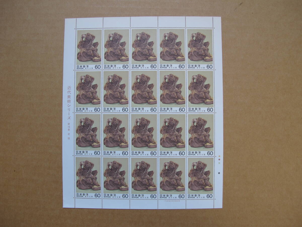 「近代美術シリーズ 第16集 老猿」の切手です。整理するために出品することとなりました。切手についての知識はあまりなく、詳しいことは答えられないことをご理解いただき、ノークレーム・ノーリターンにてお願いします。商品の状態ですが、60円の切手が20枚ついた、シートです。シート周りにシミ、しわが見られます。切手表にはシミ、しわはないようですが裏面にシミが見られます。なにぶん素人が確認したことなので見逃しがあることをご理解ください。写真を参考に判断していただければと思います。
