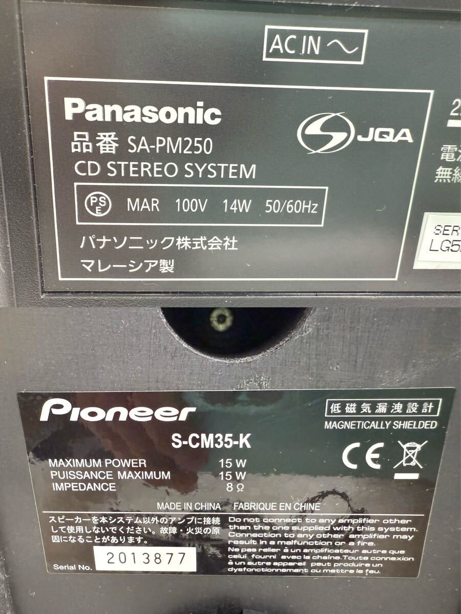 Panasonic パナソニック SA-PM250 ミニコンポ 中古現状 ジャンク