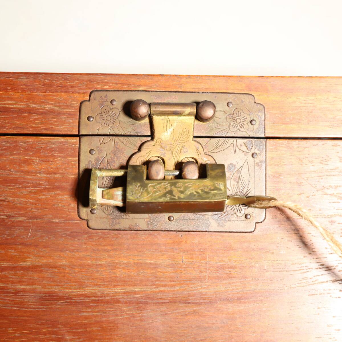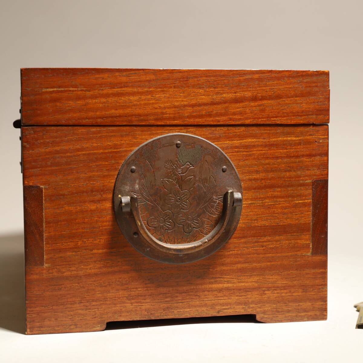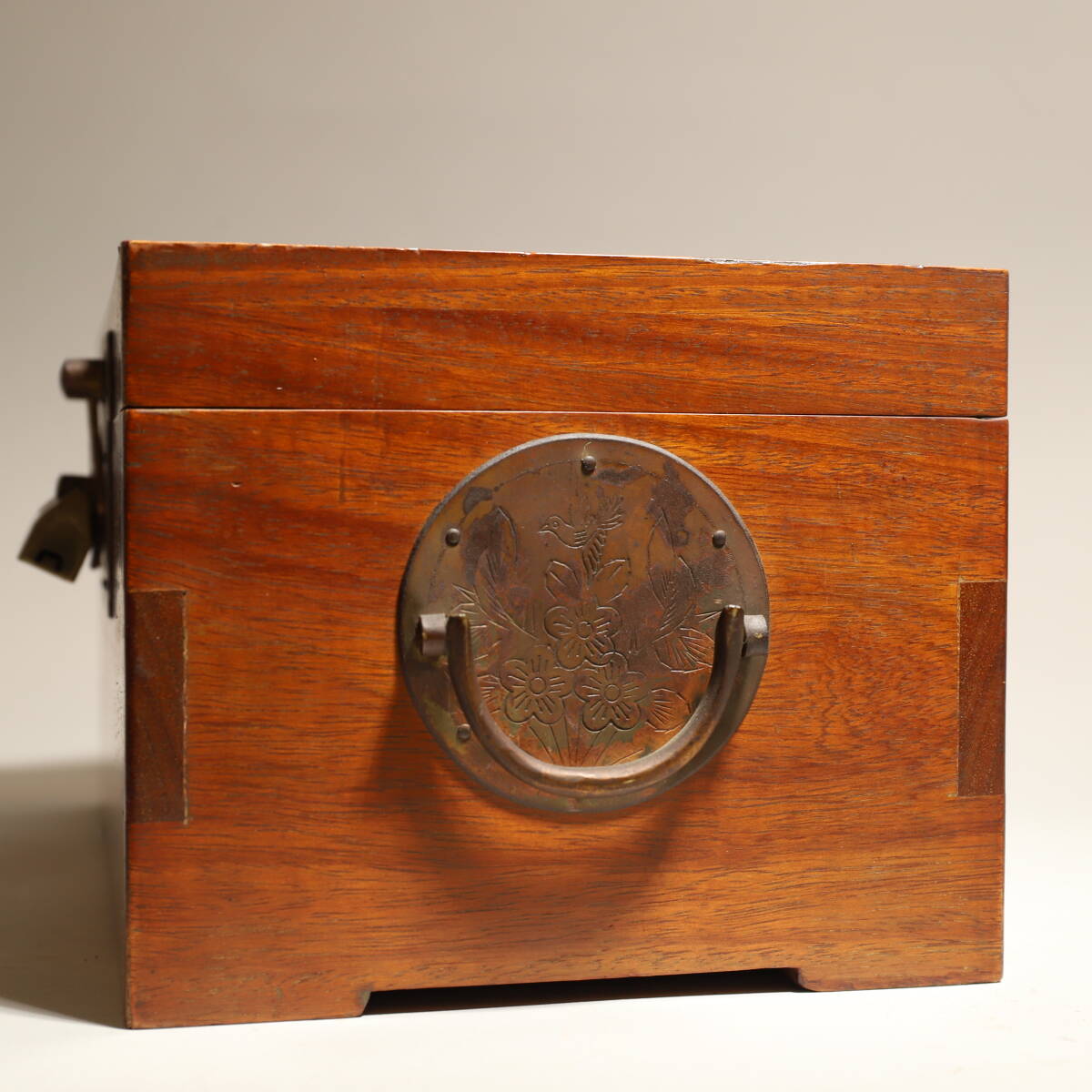 中国 銅板 彫刻 飾り ジュエリーボックス 小物入れ 小箪笥 収納箱 木製 インテリア 装飾箱 鍵付き