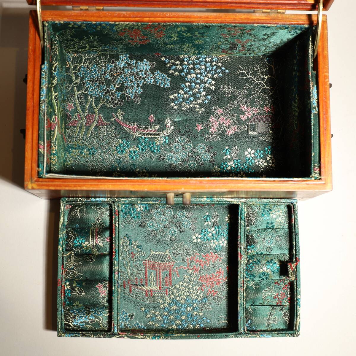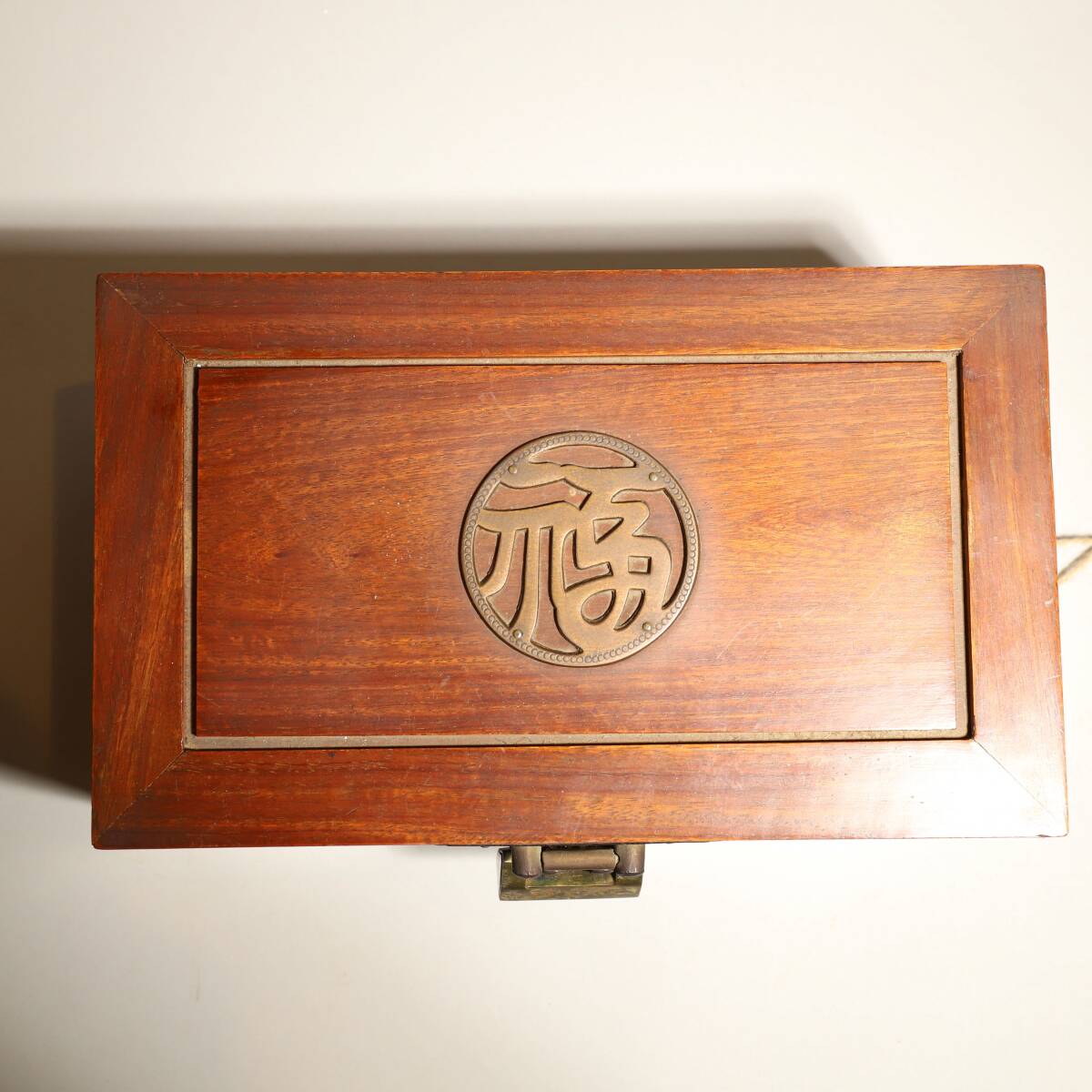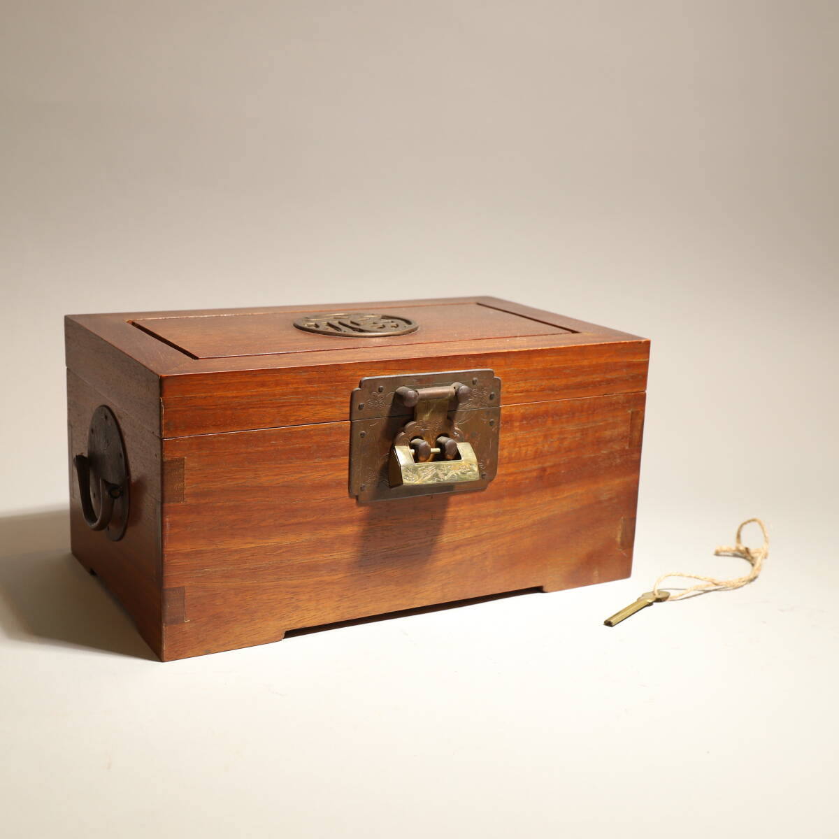 中国 銅板 彫刻 飾り ジュエリーボックス 小物入れ 小箪笥 収納箱 木製 インテリア 装飾箱 鍵付き
