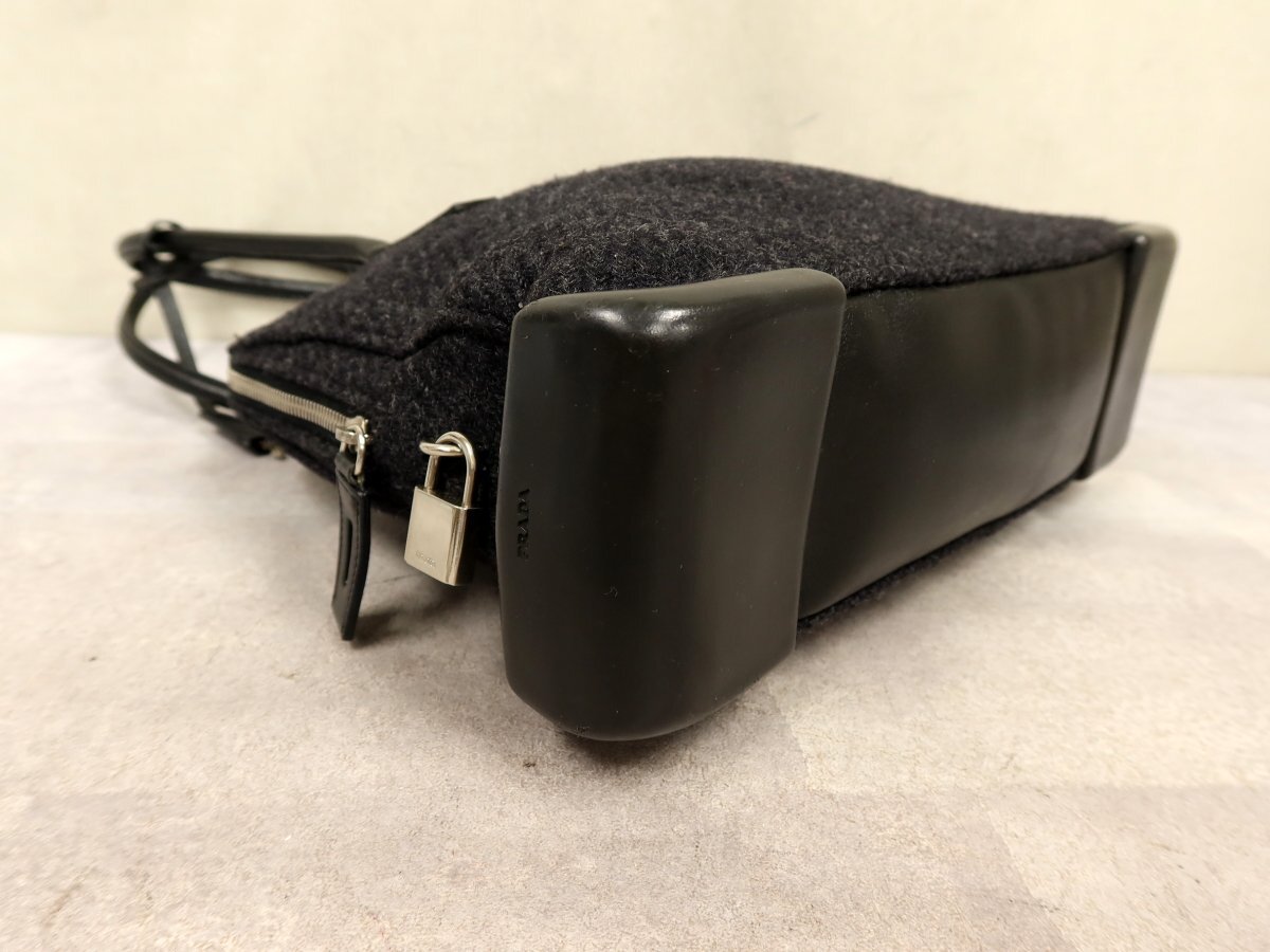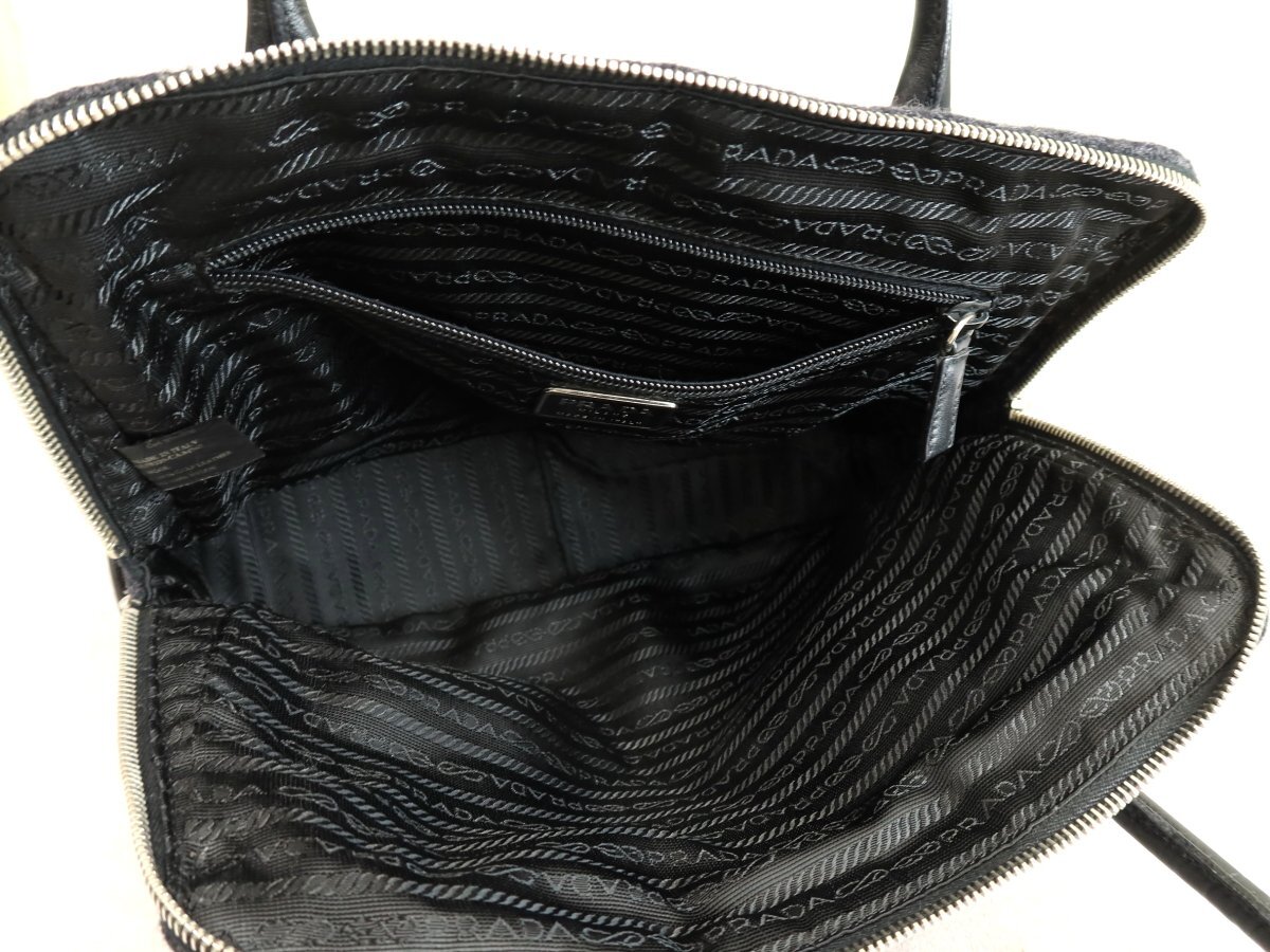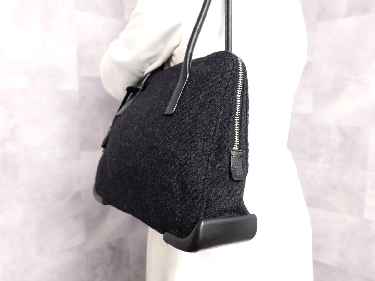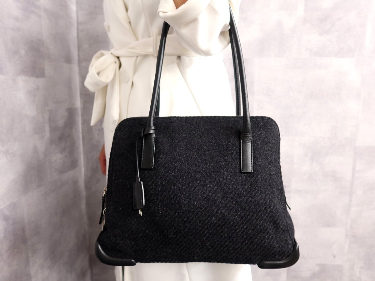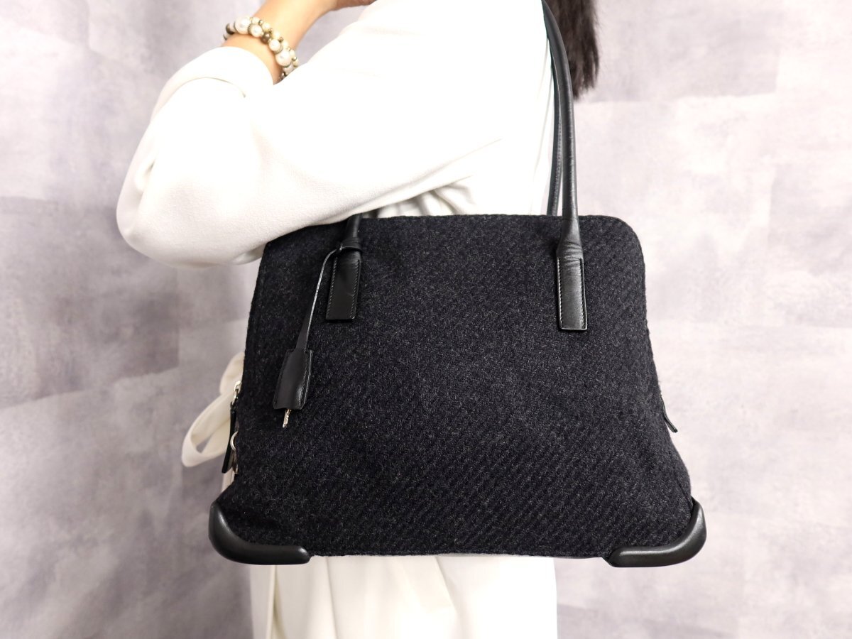●超美品●PRADA プラダ●ウール カーフ レザー 本革●ショルダー バッグ●黒●シルバー金具●肩掛け●イタリア製●B5 書類 収納●Js62394