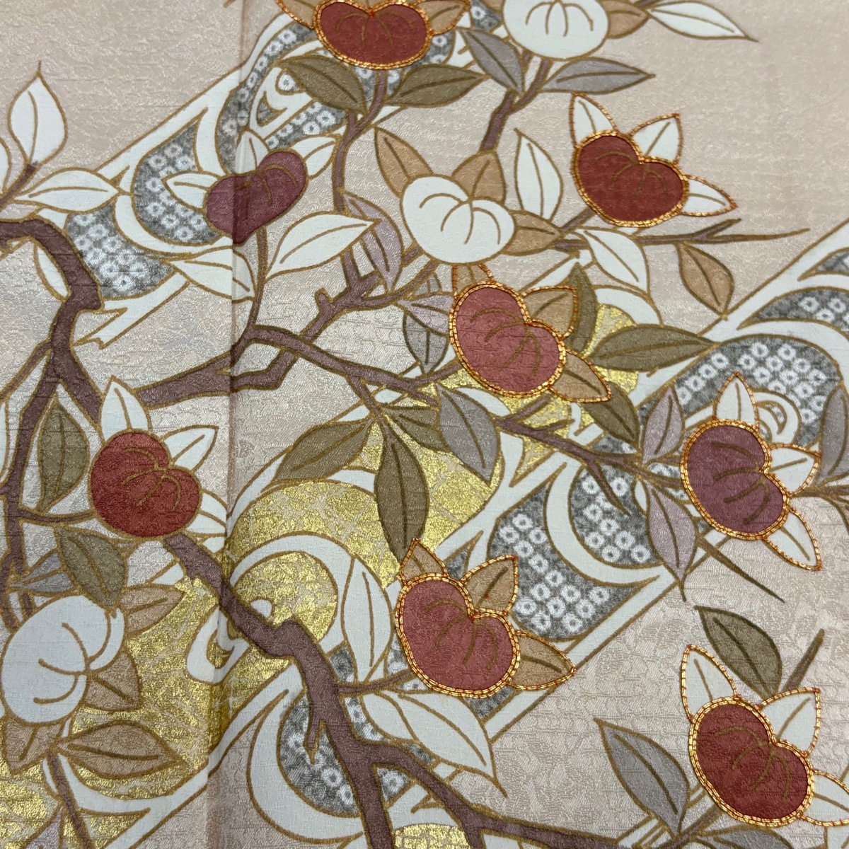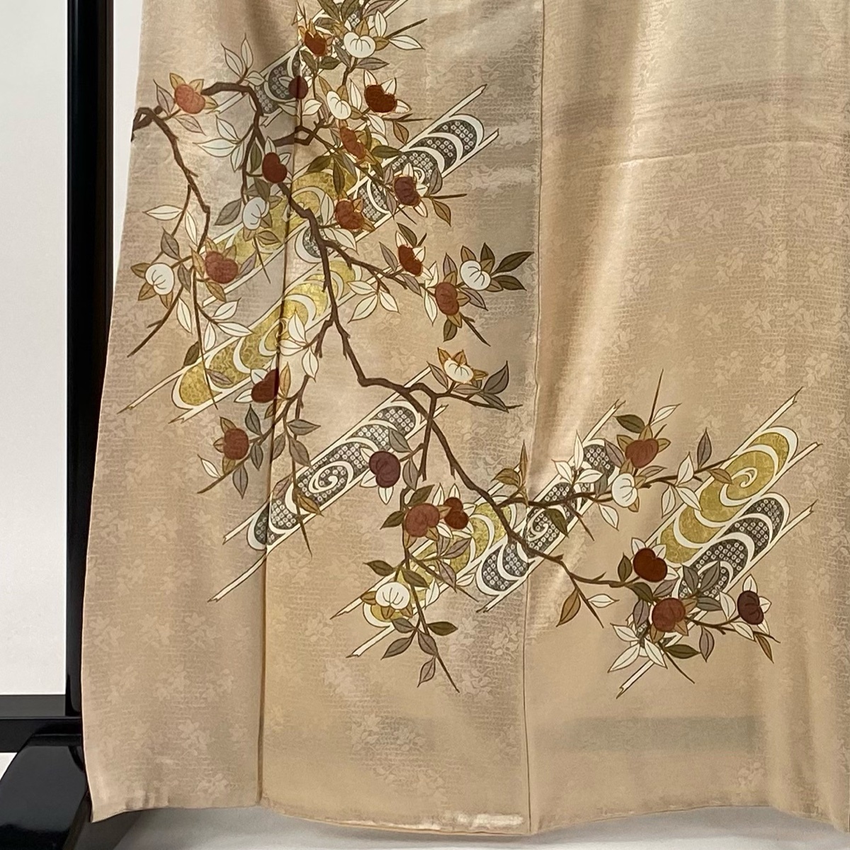 | 訪問着 秀品 橘 観世水 ピンクベージュ 袷 身丈166.5 裄丈67 M 正絹 【中古】 |