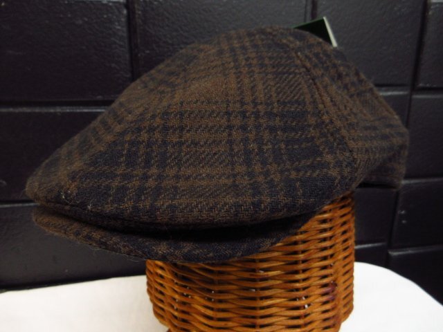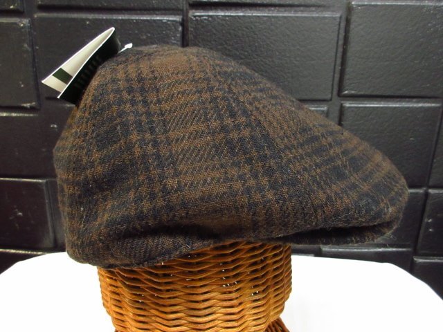 オンブレチェック ウール混 ハンチングキャップです。未使用保管品です。 つば部分はスナップの1点留めになっています。トップは6枚はぎ仕様、オーソドックスなデザインで使い勝手がよく着こなしのポイントとして活用度の高い1品です。