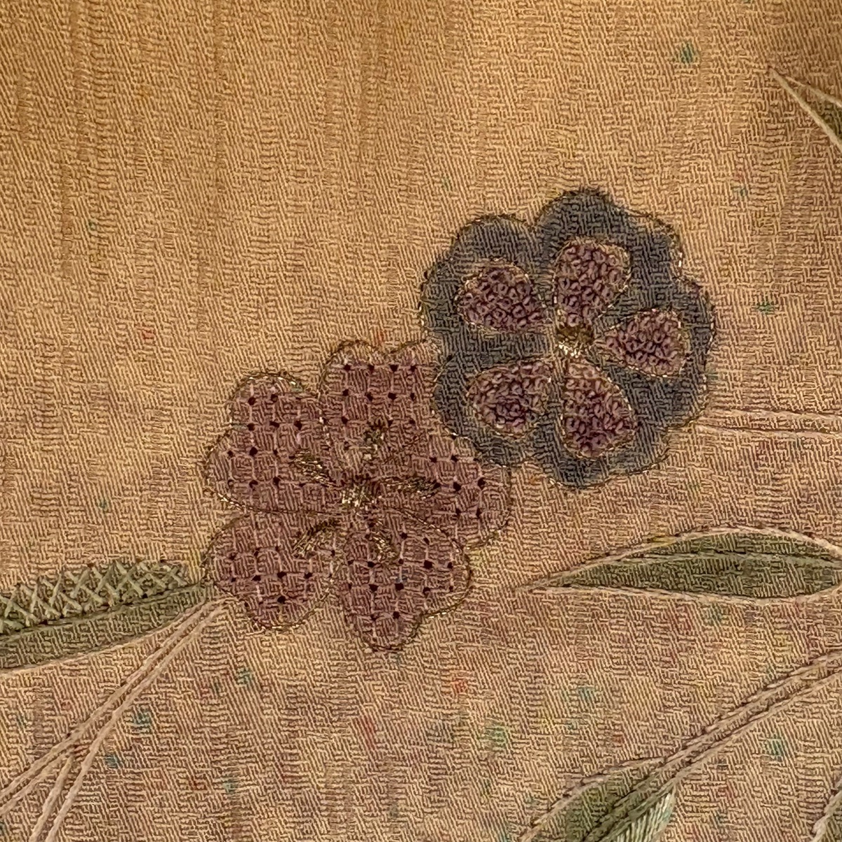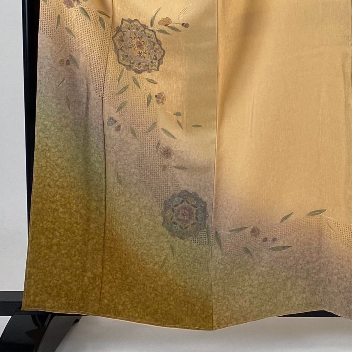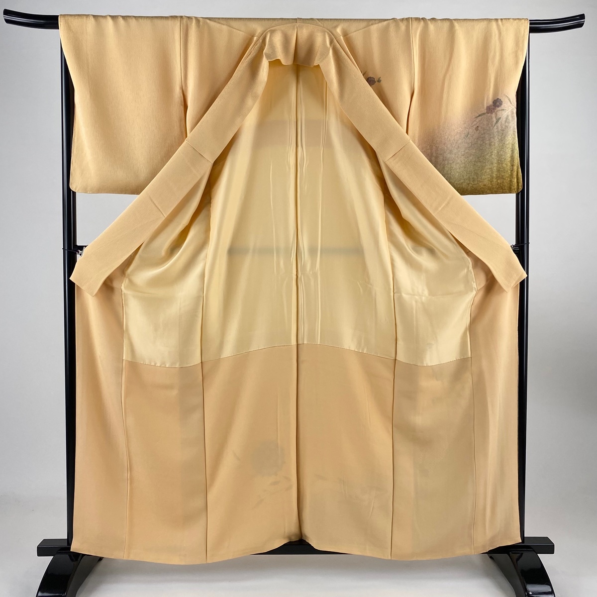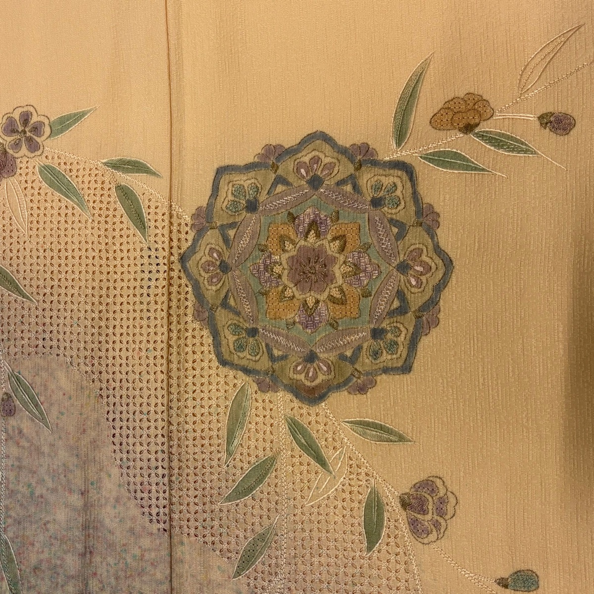 | 付下げ 秀品 華文 草花 金糸 刺繍 薄オレンジ 袷 身丈161.5 裄丈68.5 L 正絹 【中古】 |