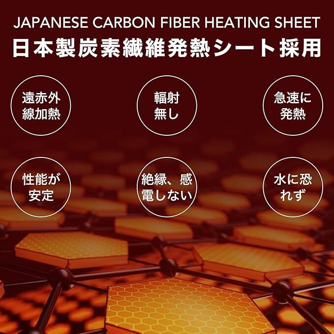日本製炭素繊維の発熱シートを採用し、スイッチを押してから約3秒であたたかさを感じられます。