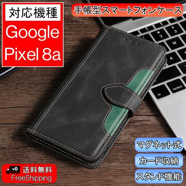| 商品名 | Google Pixel 8a用 スマホケース 新品 手帳型 レザー 耐衝撃 ピクセル カード収納 携帯ケース TPU ツートンカラー ベルト スマホカバー ブラック&グリーン |