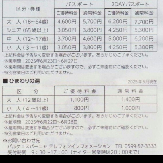 ☆志摩スペイン村☆パルケエスパーニャ☆ ご優待券6枚(6名様)