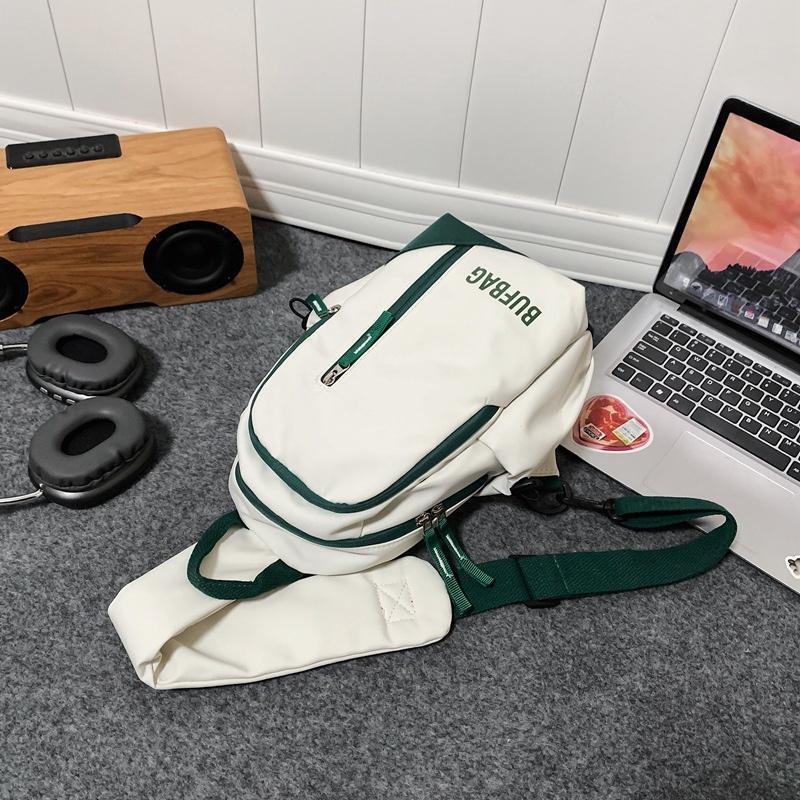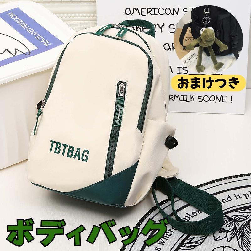 白×グリーンのバイカラーデザインが洗練された印象を与える、今どき感満載のショルダーバッグ。性別問わず使えるユニセックス仕様で、街歩きや通学にもぴったり。