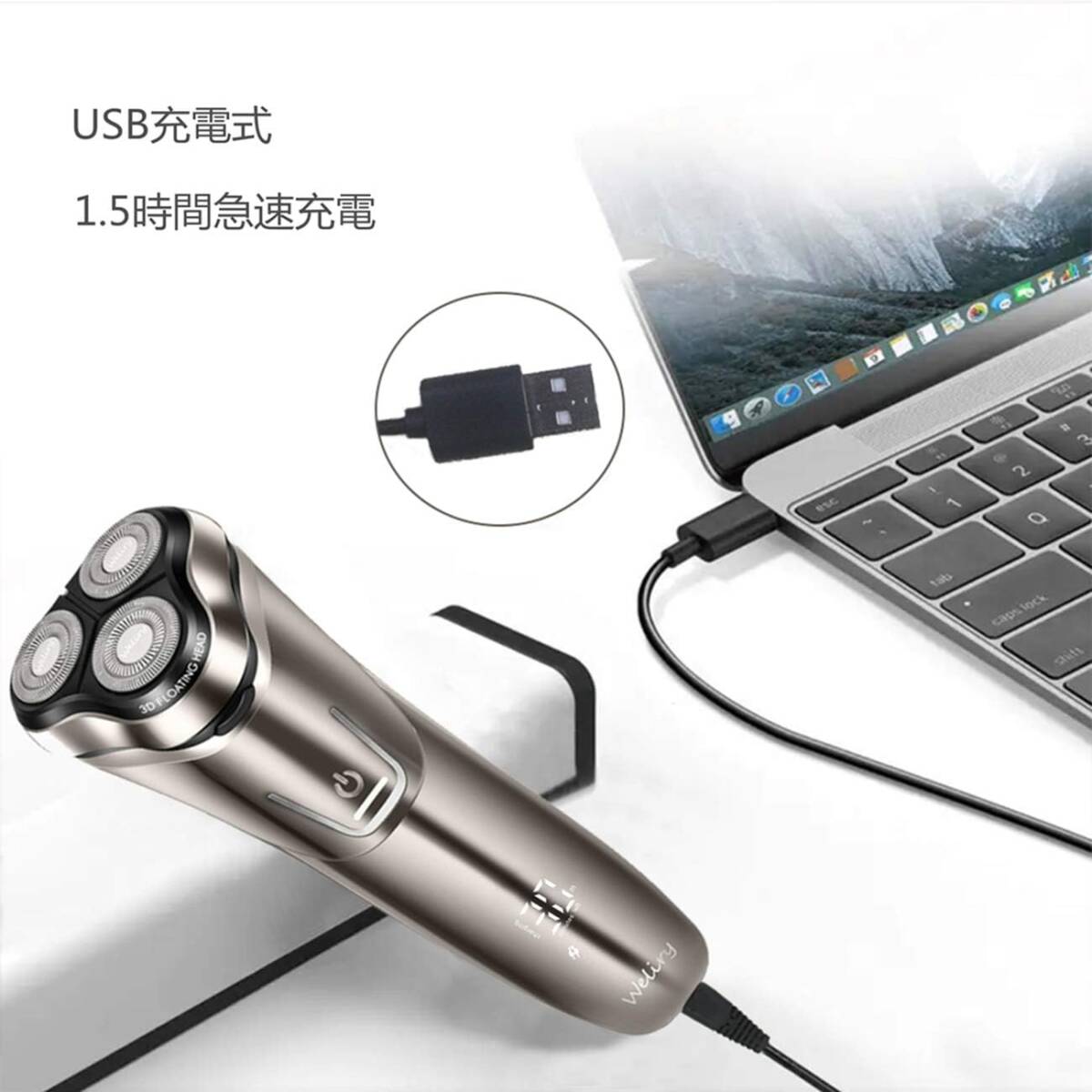 機能性重視 USB充電式回転メンズシェーバー 1.5時間急速充電 600mAhバ
