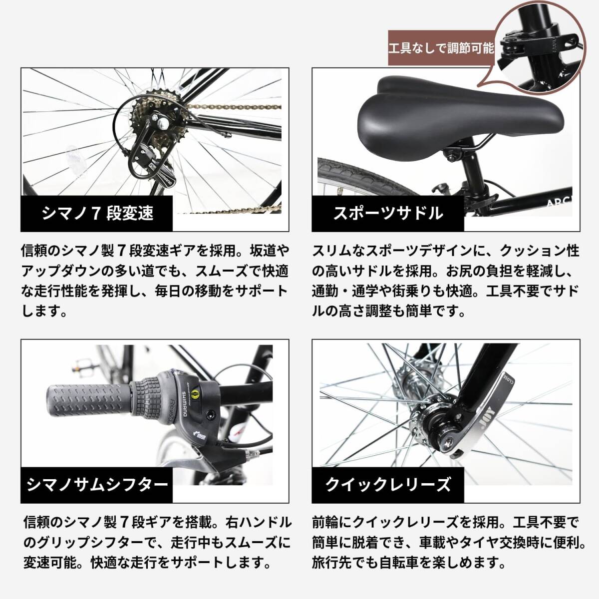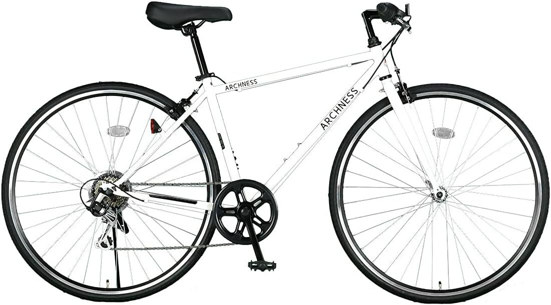 ホワイト色 ARCHNESS クロスバイク 自転車 タイヤ700X28C シマノ7段変速ギア 27インチ相当 軽量 前後キャリパーブレーキ 通勤 通学