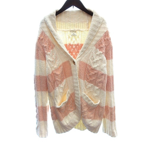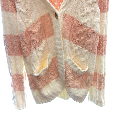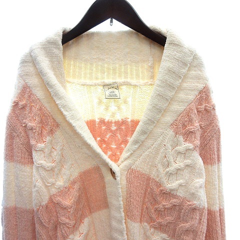 ジェラートピケ gelato pique ルームウェア ニット カーディガン ショールカラー ケーブル ボーダー 長袖 F アイボリー 白 ホワイト
