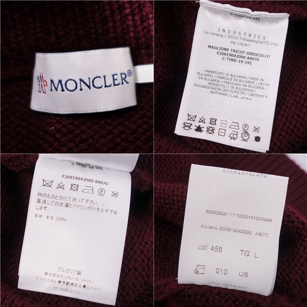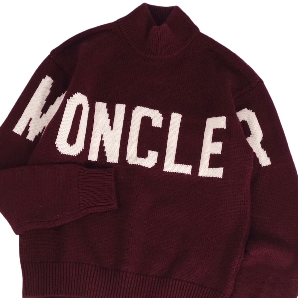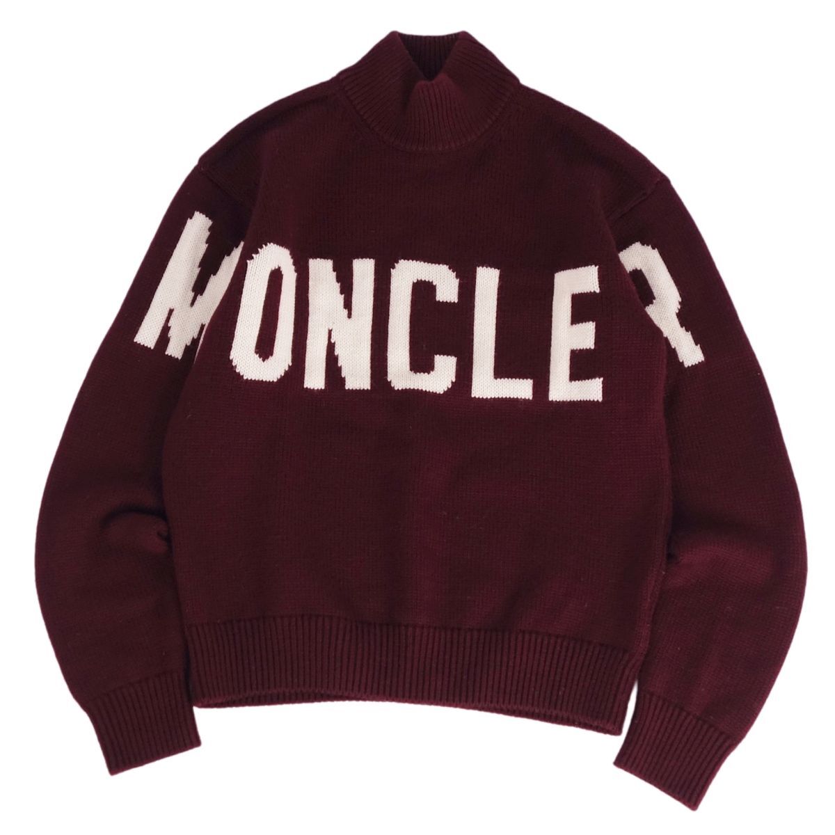 | 美品 モンクレール MONCLER ニット 2019 セーター ロングスリーブ 長袖 ロゴ ウール トップス メンズ L レッド |