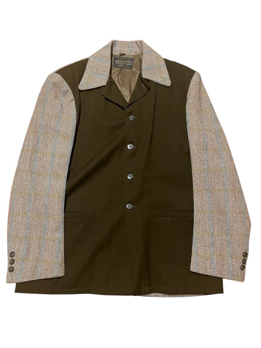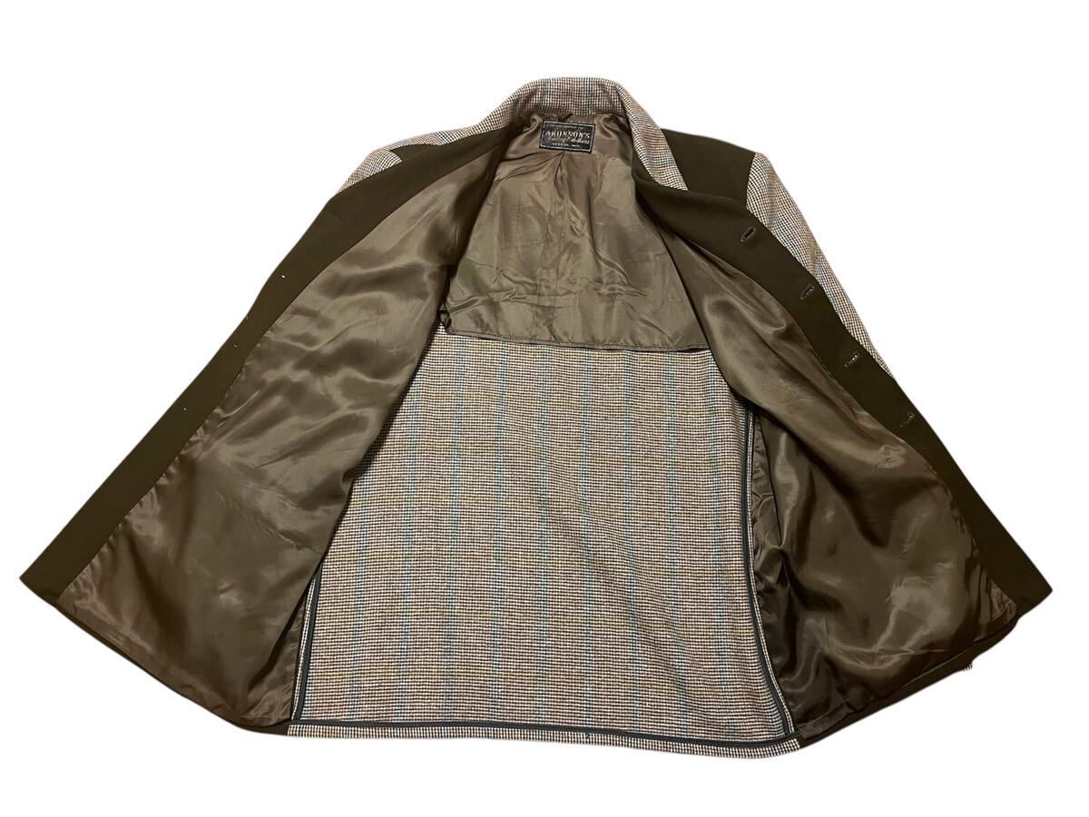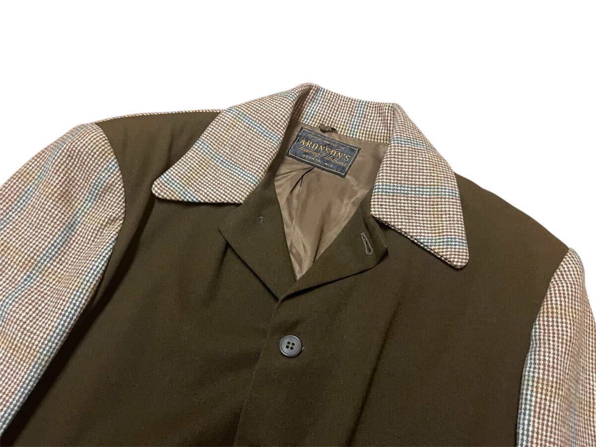 1940’sのハリウッドジャケットです。ウィスコンシン州のオコントにあった衣類販売店ARONSON’Sのタグあり。コンディション抜群です。1940’sの西海岸より流行したジャケットで、全国に広まり人気となった歴史あるジャケットです。シナトラなどハリウッド俳優が着用する写真も多く残っています。肩幅約48、身幅約56、着丈約76、袖丈約63センチです。アメリカより9万円程で購入。