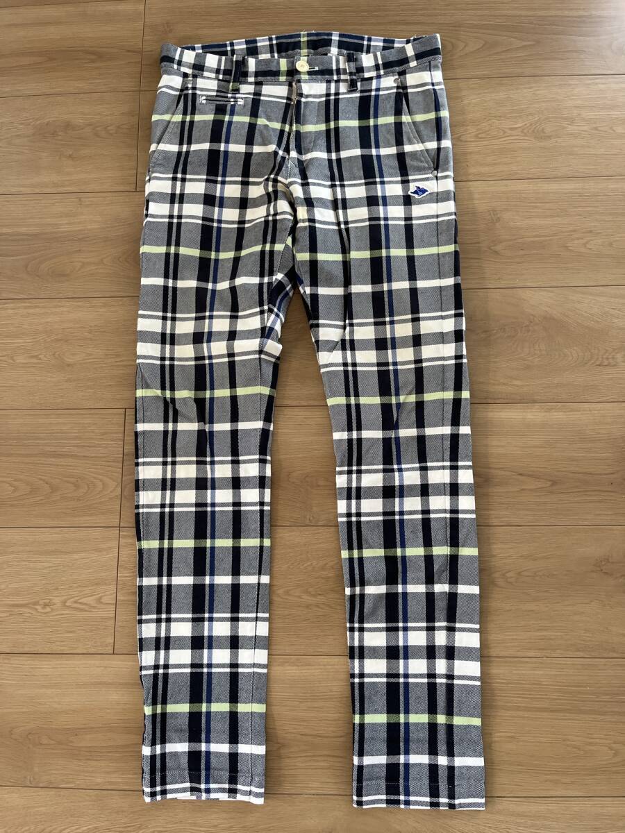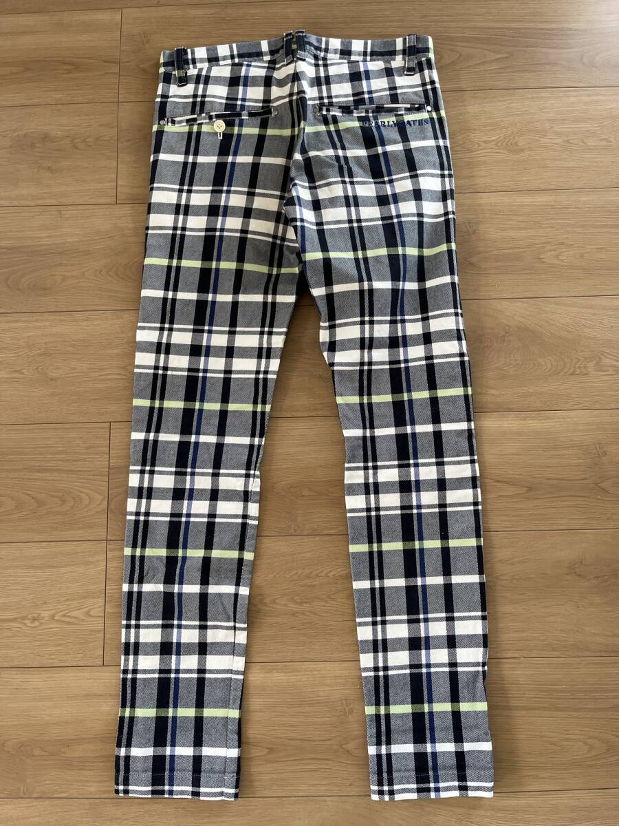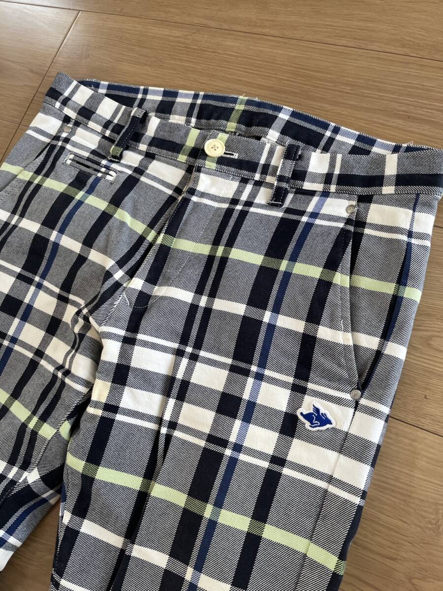 中古品★訳アリ格安スタートPEARLYGATESパーリーゲイツ☆飛びウサギチェック柄ストレッチパンツ5白×黒×緑
