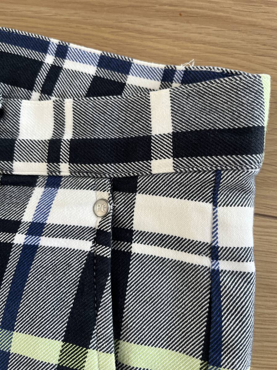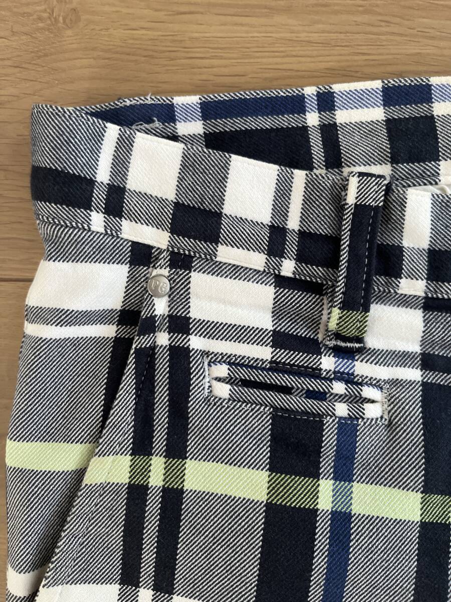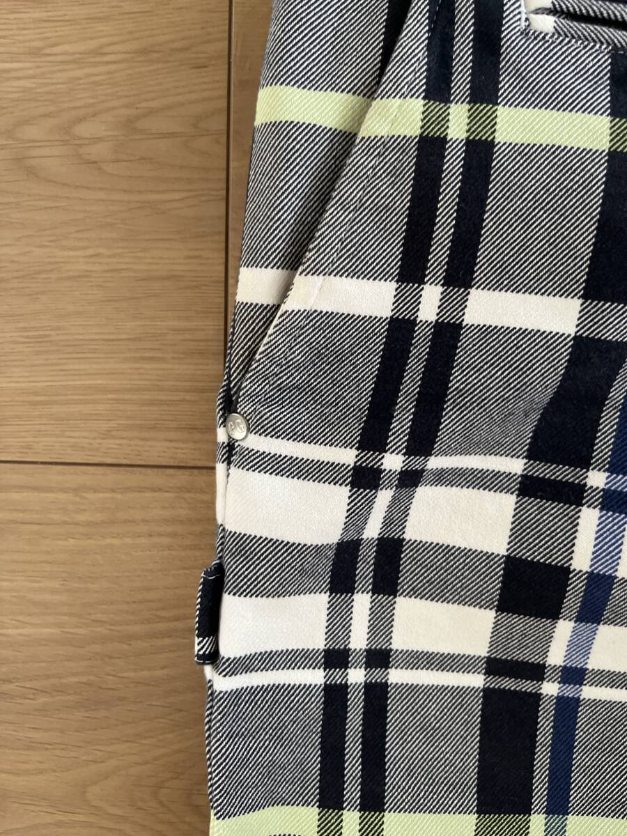 中古品★訳アリ格安スタートPEARLYGATESパーリーゲイツ☆飛びウサギチェック柄ストレッチパンツ5白×黒×緑
