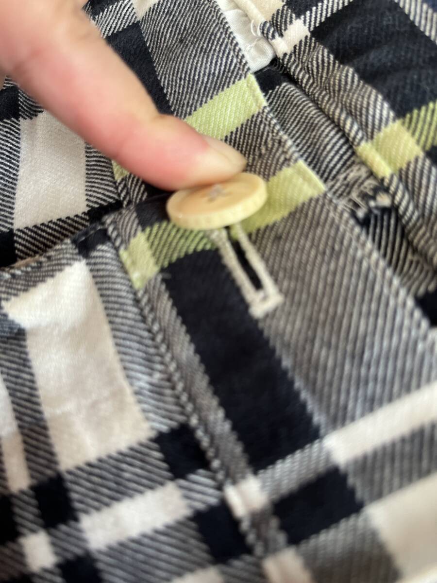 ウエスト正面にもボタンが付いていますが、このボタンと左臀部ボタンの側面には「PEARLYGATES」のロゴがプリントされています。