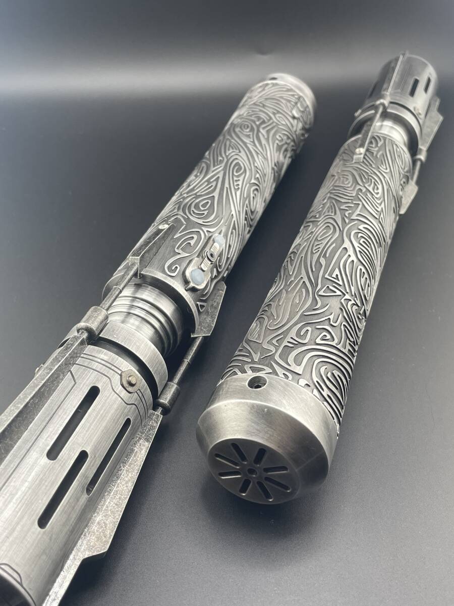 korbanthが販売していたサティール・シャンの空ヒルトになります。柄の模様はエッチングではなくCNC加工されています。