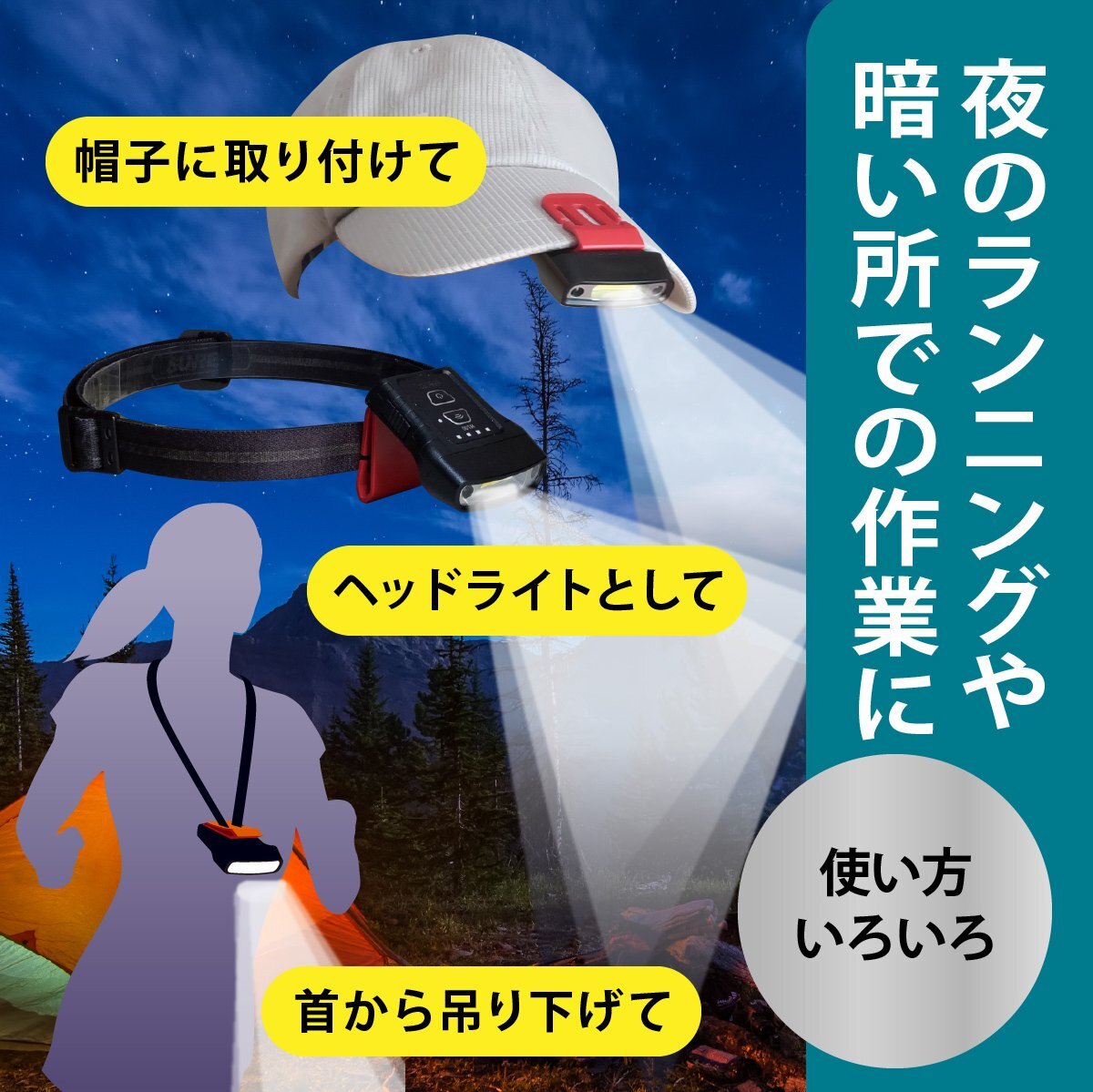 ● 長さ調節できるヘッドバンド付きでヘッドライトやネックライトとしても使用できます