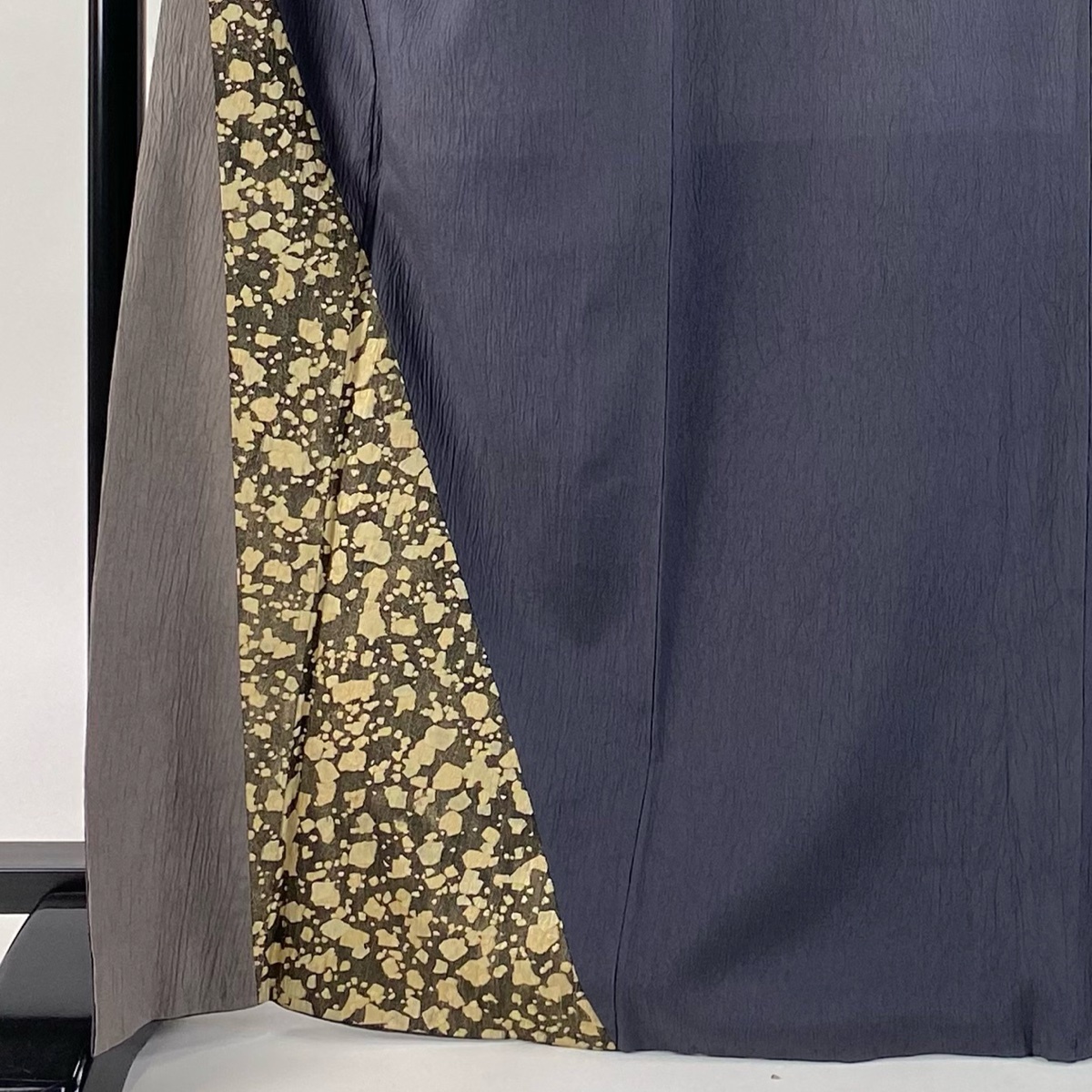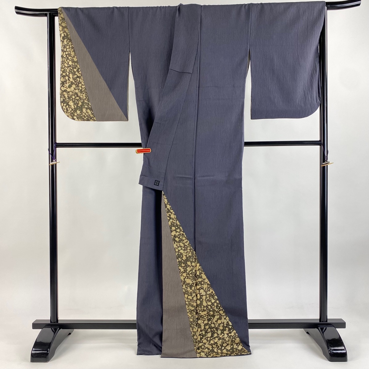 | 付下げ 逸品 落款 紫藤尚世 幾何学模様 金彩 裂嵌め 灰色 袷 身丈166.5 裄丈68 L 正絹 【中古】 |