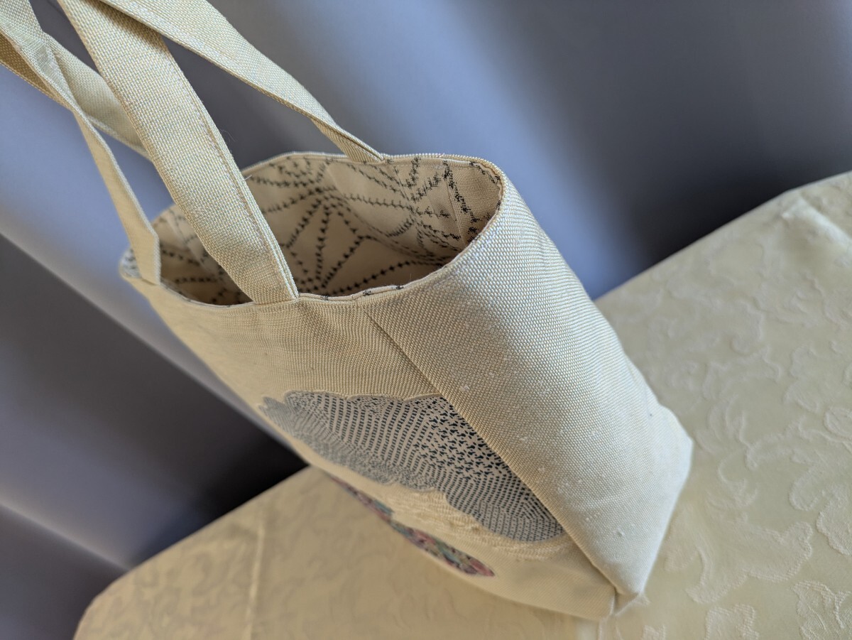 帯をリメイクして作成していますので着物特有の保存臭がする場合があります。ご理解の上入札をお願いいたします。