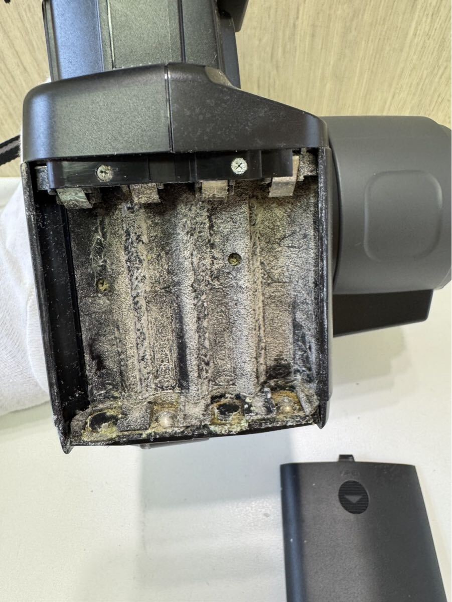 電池挿入部分に素材の劣化、ダメージがあるため、ジャンク品扱いとさせていただきます。