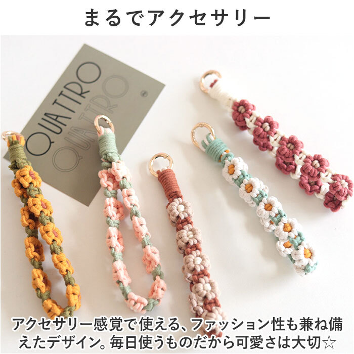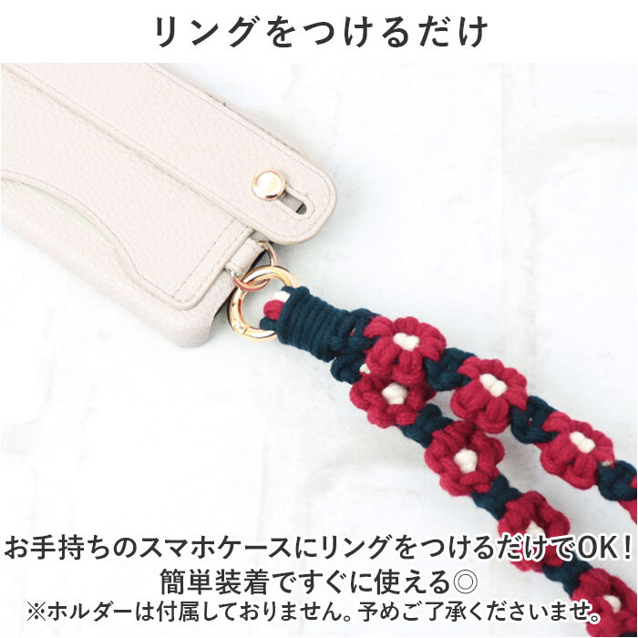 | 商品説明 | ・・ほっこり可愛いフラワー編み♪スマホの落下防止対策に役立つ「スマホハンドストラップ」が登場 ・【リングをつけるだけ】 ・お手持ちのスマホケースにリングをつけるだけでOK!簡単装着ですぐに使える◎ ・【スマホの落下防止に】 ・ストラップ部分を手首に通せば、スマホの落下防止に。バングルを通したままスマホ操作が可能なので便利! ・【まるでアクセサリー】 ・アクセサリー感覚で使える、ファッション性も兼ね備えたデザイン。毎日使うものだから可愛さは大切☆ ・【ほっこり手作り感】 ・手編みのようなほっこりする可愛さが魅力。優しいフラワー編みで、スマホを可愛くグレードアップ! ・【カラーが豊富】 ・デザインのバリエーションが豊富。お好みをチョイス! |