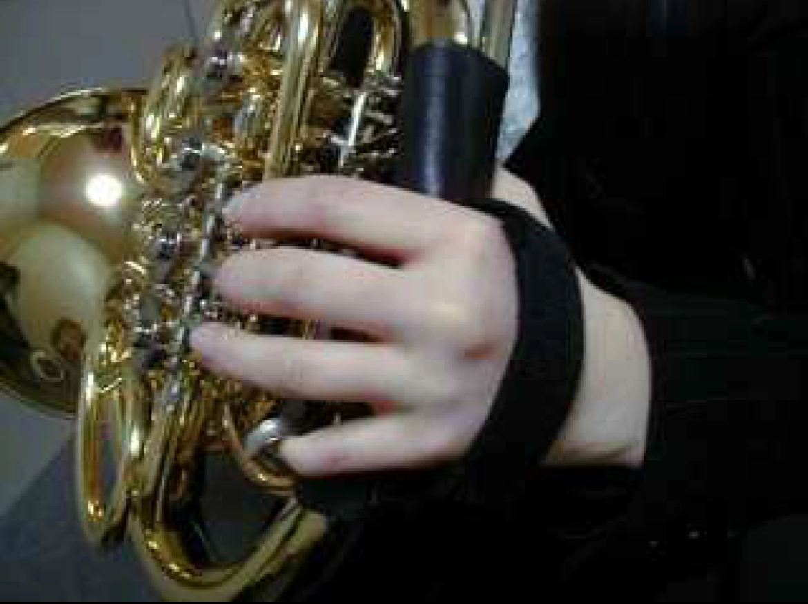 ホルンを保持する際の、特に左手首の負担を軽減します。