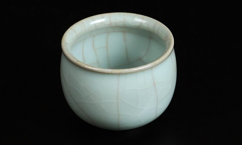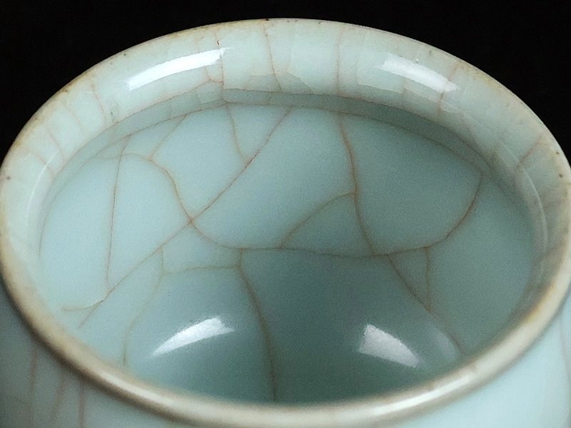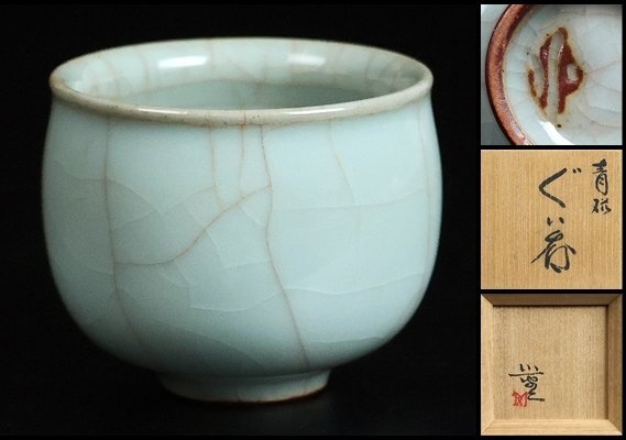 正確無比な轆轤成形によって切れ味鋭い薄作りを実現し、たっぷりと施された釉薬が抜群の焼成の中で美しい貫入を呈し、魅力的な表情へと変化を遂げた作品。