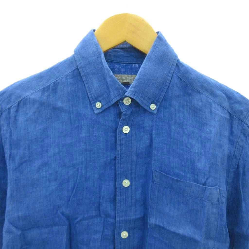 ユナイテッドアローズ A DAY IN THE LIFE UNITED ARROWS ボタンダウン BDシャツ 麻 リネン 長袖 S 青 ブルー 1014 ■YHS6 メンズ