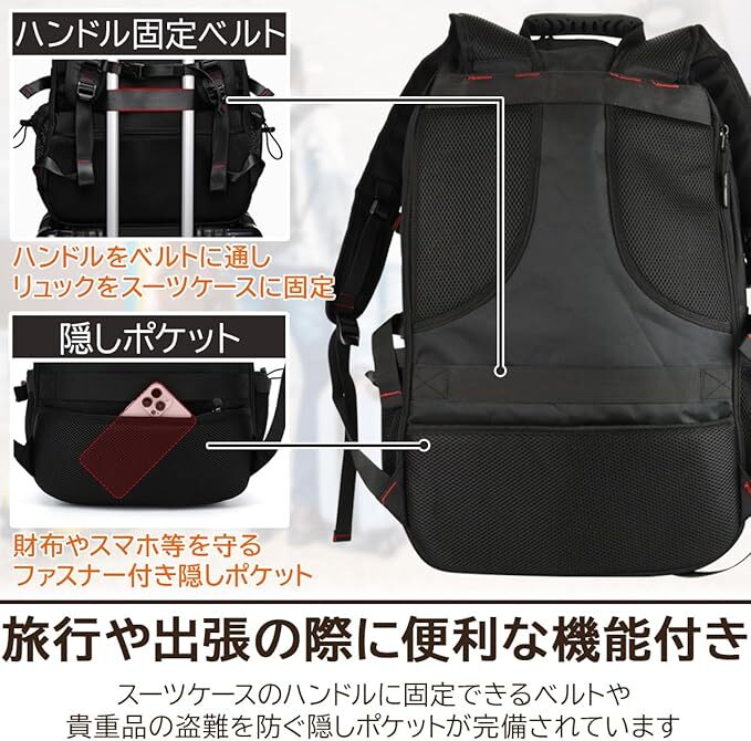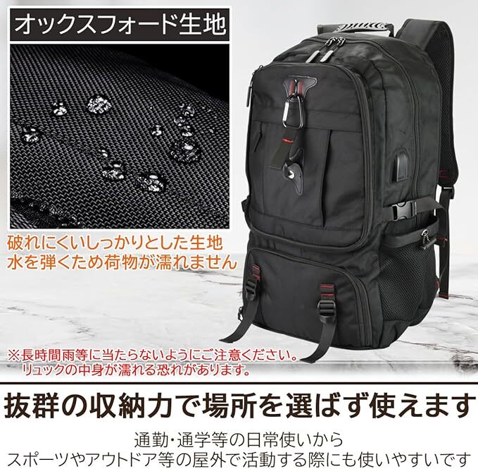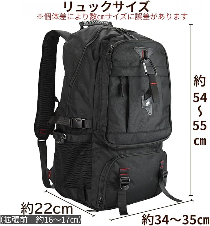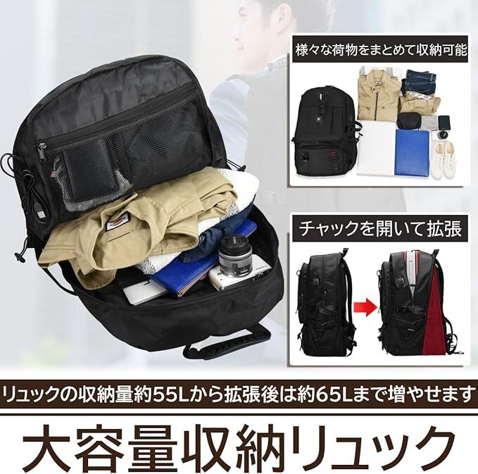 大容量 リュック 機内持ち込み 拡張可能 55L-65L シューズポケット 男女兼用 国内 海外 旅行 出張 防災 バックパック 黒