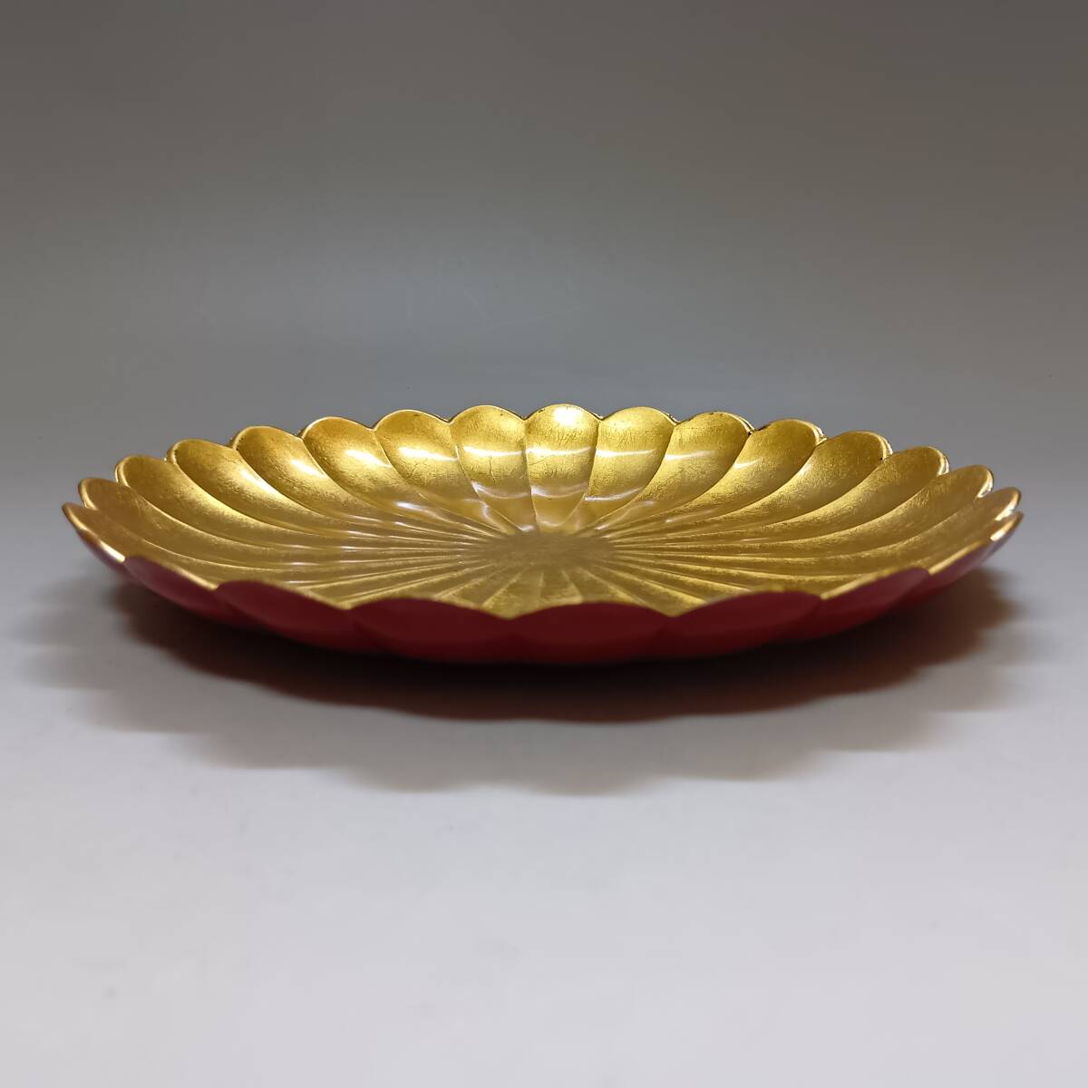 【B-3】漆器 菊花 菓子器 銘々皿5枚組 金色 茶道具 時代物 | |||
