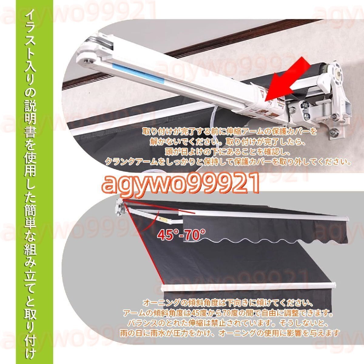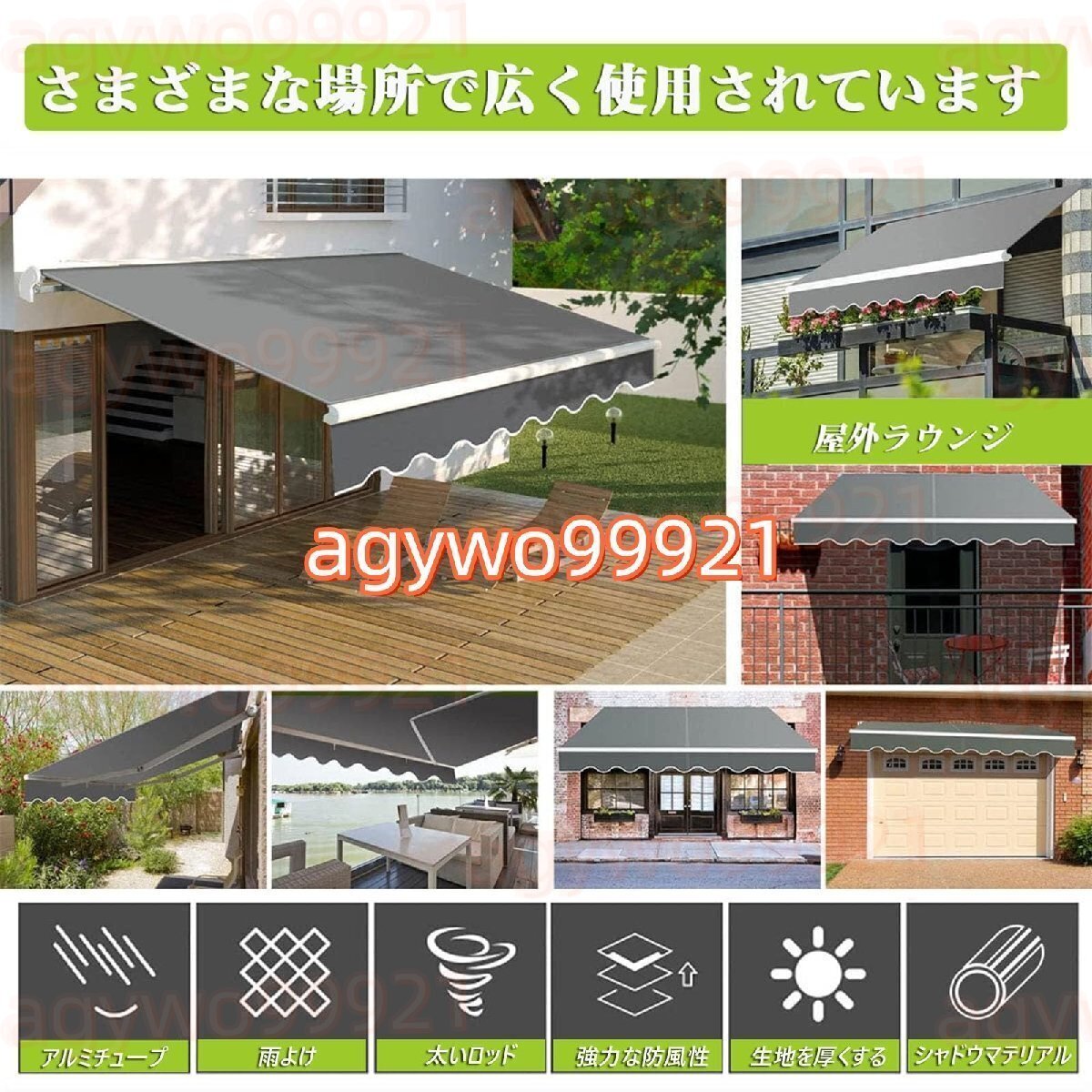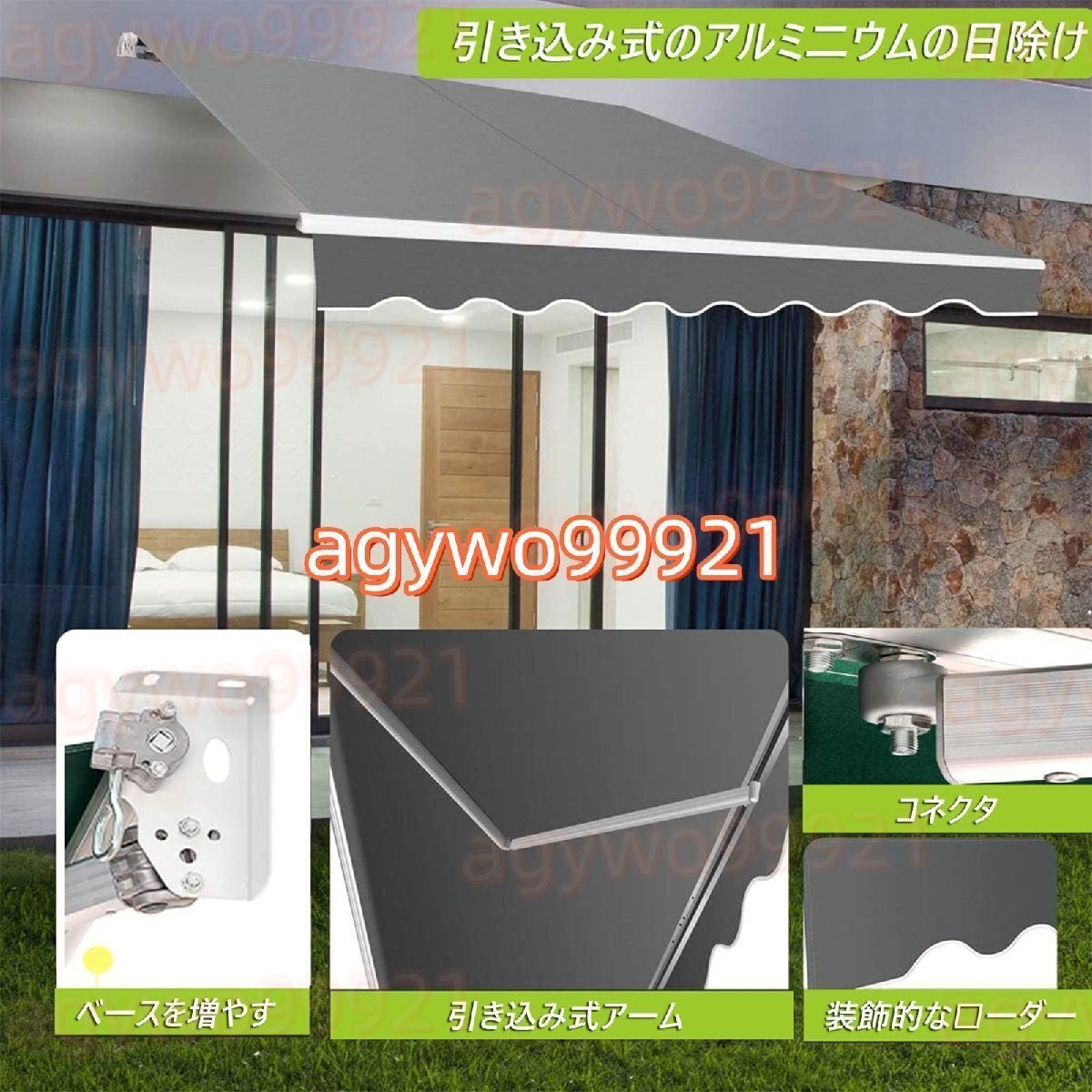 ?オーニングテント?格納式キャノピー、オーニングテント、サンシェード、屋外格納式キャノピーは新しいデザインを採用しています。 厚手のキャンバス、日陰、防雨。 商用および家庭用に適しています??オーニング 手動効果的な日光と雨の保護、折りたたみ式アームオーニングには、防水性と耐紫外線性を備えたPUコーティングが施されています。この機能により、夏や雨天時の紫外線や雨から身を守ることができます。折りたたみ式アームオーニングは、柔らかく心地よい日光をもたらします。??壁付けオーニングは、建物の外観の美観を高め、空間全体の視覚効果を高める美しいデザインです。 個人の好みや建築様式に合わせて、さまざまなスタイルや色の日除け生地を選ぶことができるので、周囲の環境とコーディネートすることができます。??製品の特徴・簡単操作の手動ハンドルクランク・アルミ合金製、錆びにくく、腐食に強い・長時間使用するための高密度耐水性ポリエステル・イラスト入りの説明書を使用した簡単な組み立てと取り付け??製品重量:・幅2mで重量約7.9kg・幅2m5mの重量 約8.4kg・幅3mの重量 約8.9kg・幅3m5 約9.4kg・幅4mの重量 約10kg??パッケージ内容:・ターポリン*1 ・ネジキット*1 ・アルミニウム合金材料部品*1・取扱説明書 *1??注意:製品の測定方法によって、製品に1-3 cmの誤差が出る可能性があるので、理解してくださいお買い求めの商品にご満足いただけず、発送上の理由で不良品がございましたら、お気軽にお問い合わせください。