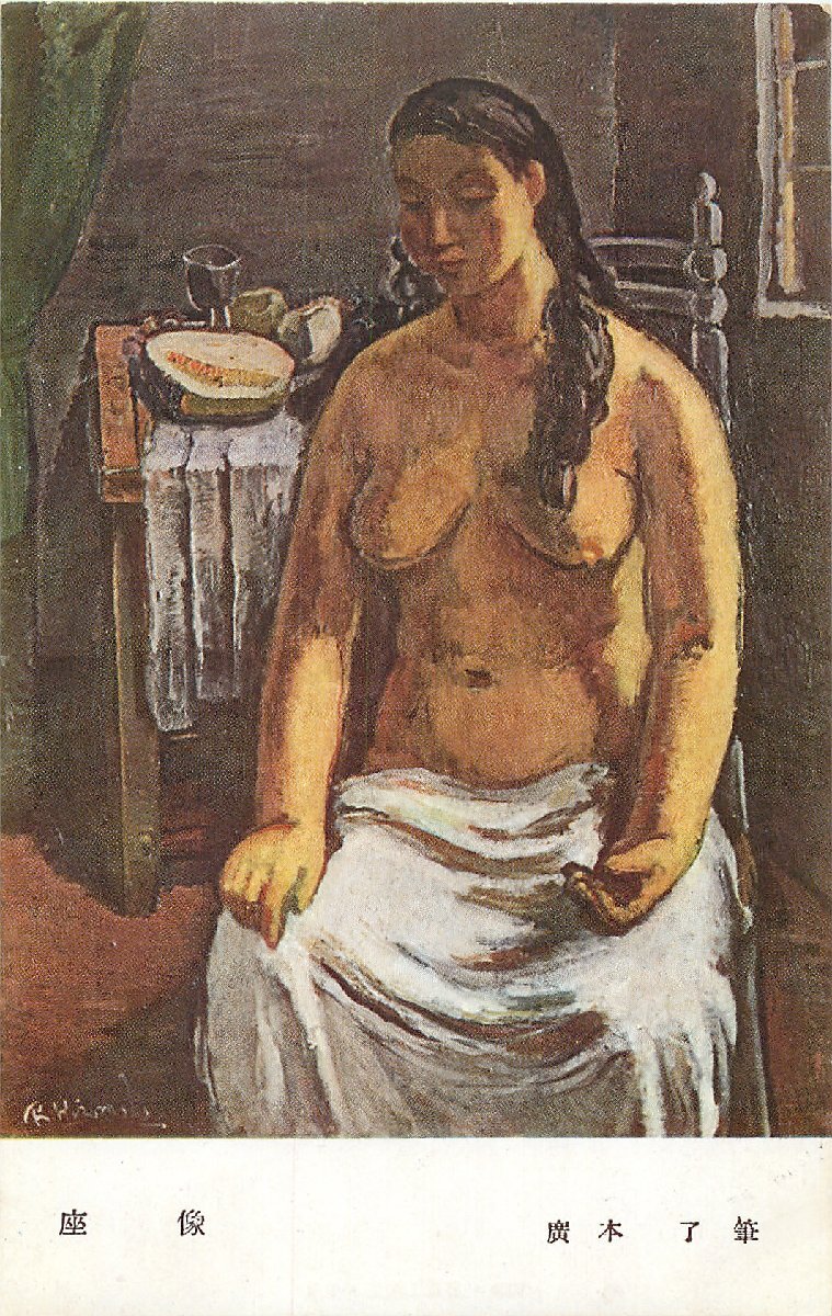 b-2871【絵葉書】◆ 美術展覧会出品 座像 廣本了