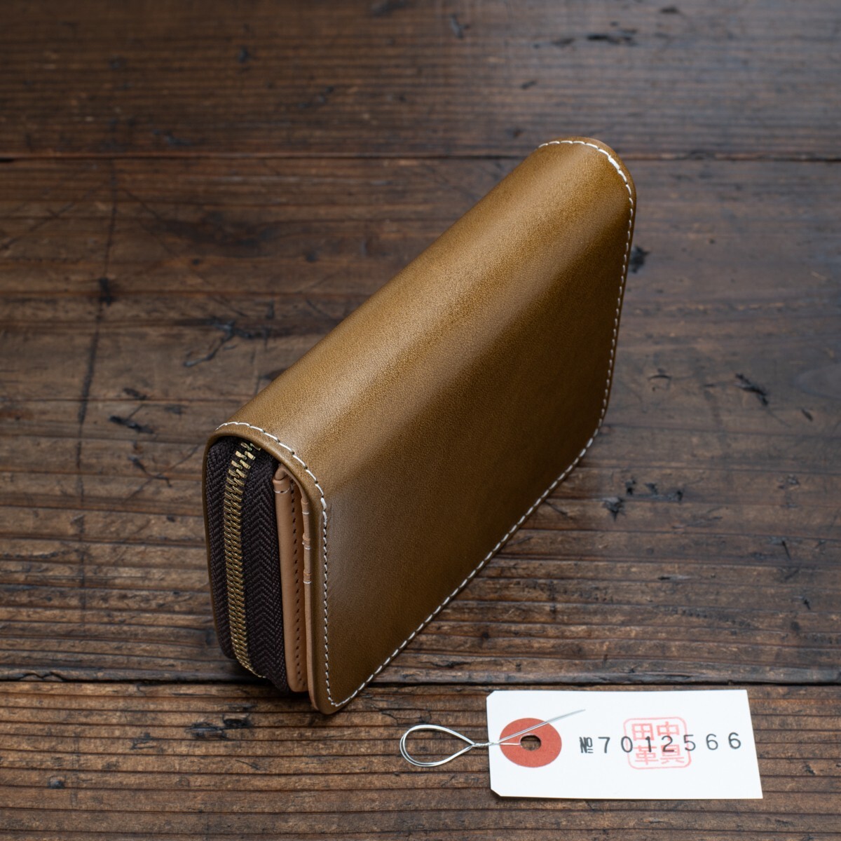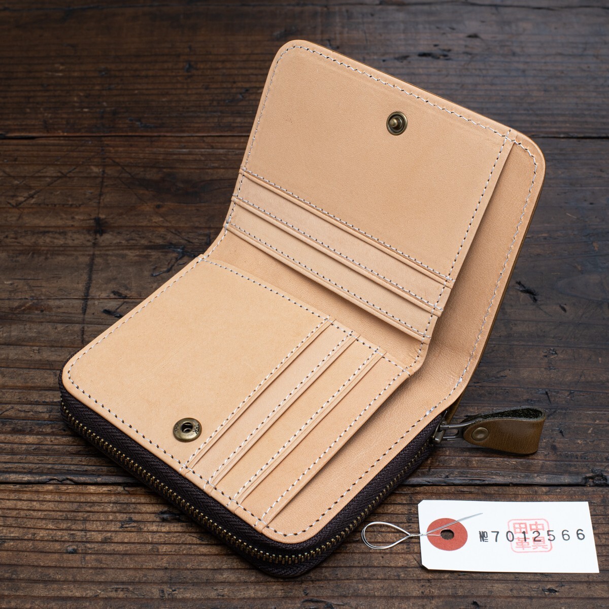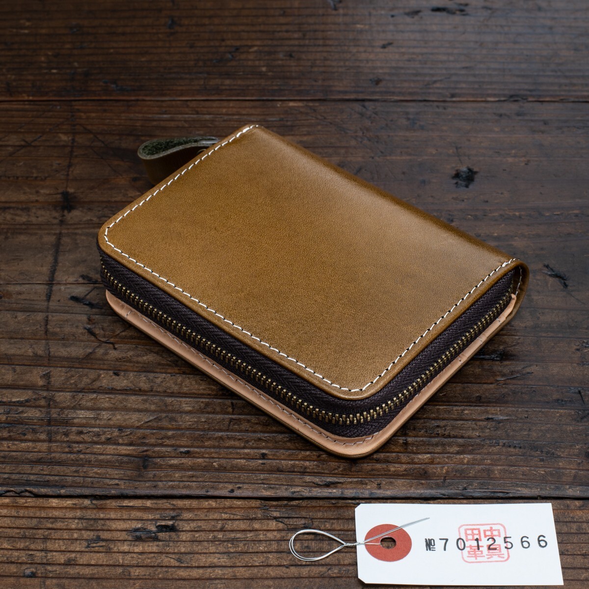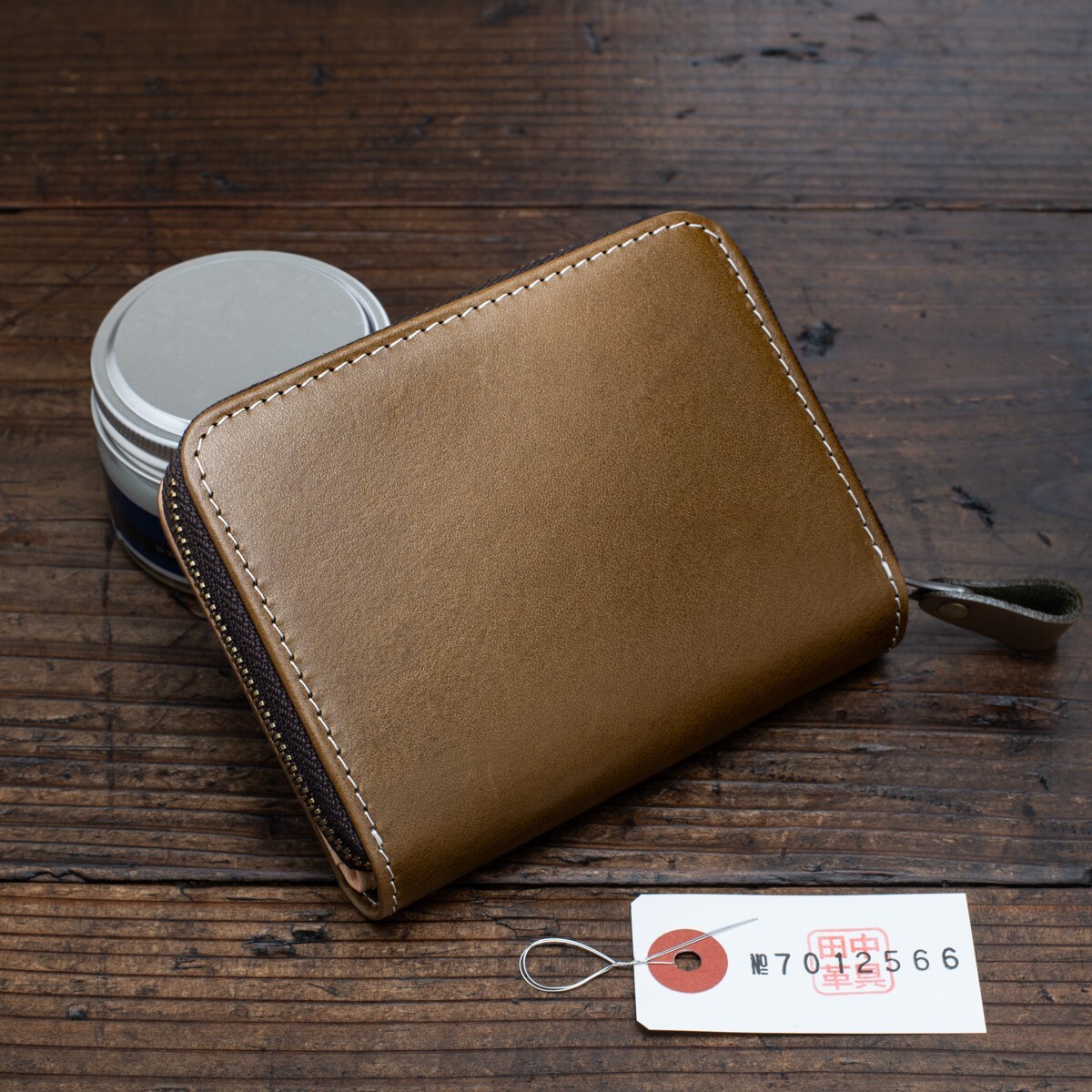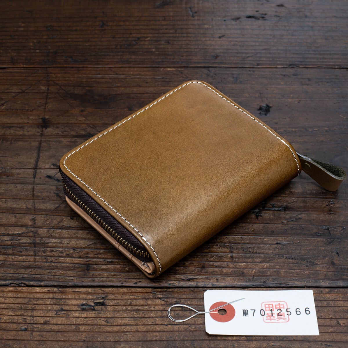 オリーブグリーン【深緑】本革 イタリアンレザー ラウンドファスナー コンパクト メンズ 財布 二つ折り 新品 未使用 送料無料 1円 田中革具