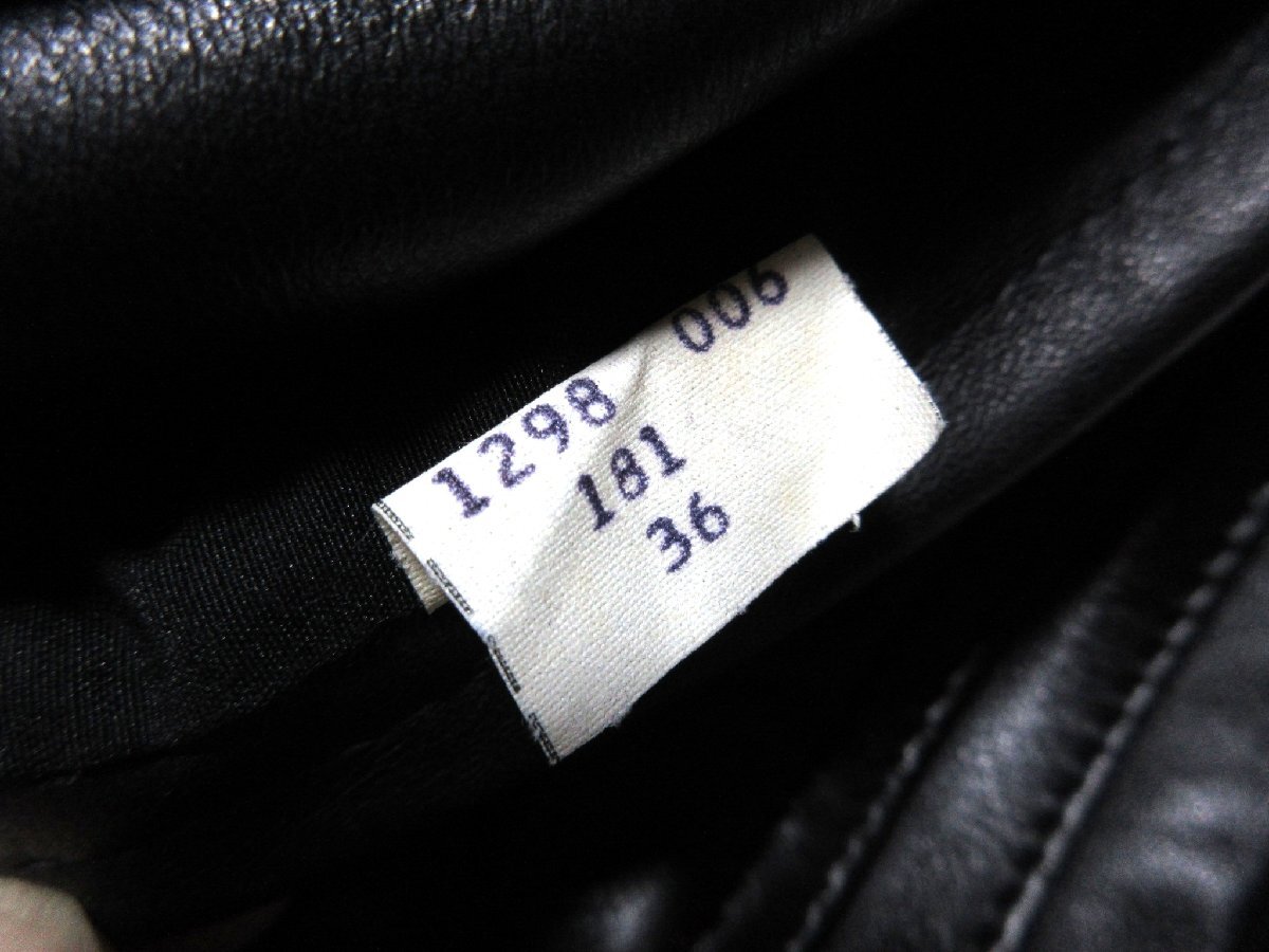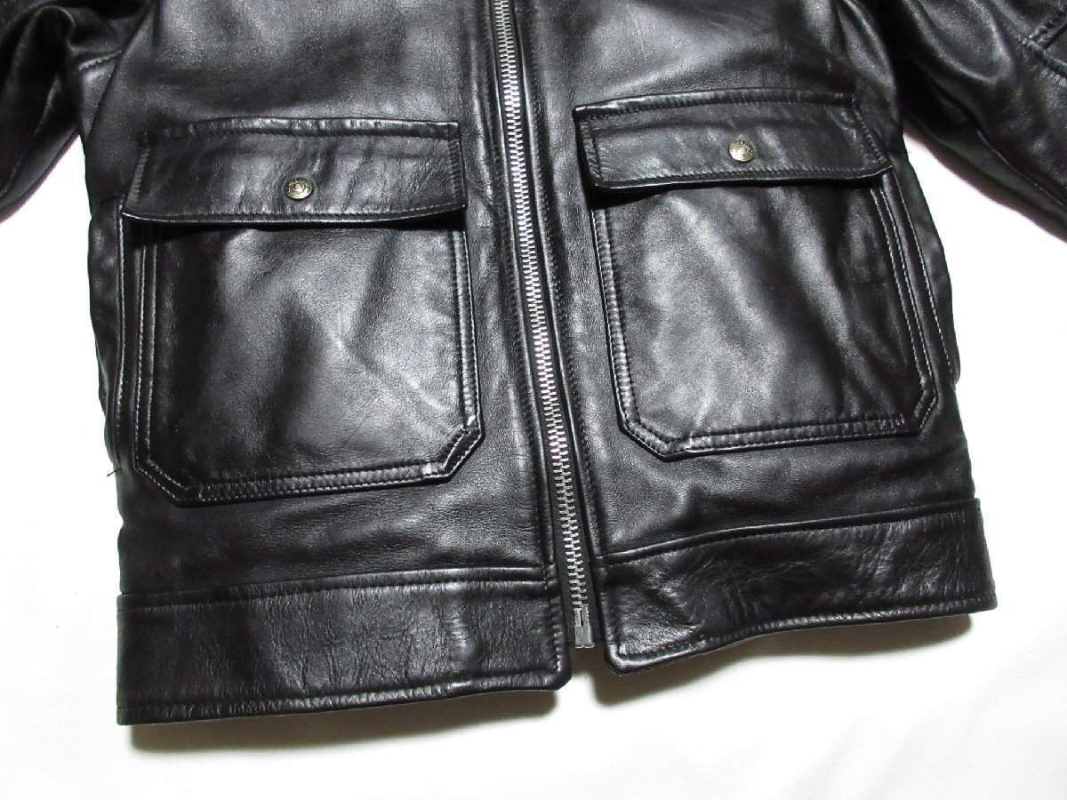 | 極上美品、ほぼデッドストックに近いミントコンディションです。革の状態も良いです。スレキズ等も殆ど無く目立つ汚れ、ダメージ等は見当たりません。イタミやすい袖先や裾も大変綺麗です。裏地、ポケットスレーキも綺麗で汗、煙草、香水臭等感じられません。 極上美品の部類ですが、年代モノではありますので、完品をお求めな方、細かな部分まで気になる方など状態に過度に神経質な方はご遠慮下さい。 ※サイズ表記36ですが大き目で、着用感はL相当です。ただ裾幅はやや細身ですので高身長の細身の方などにオススメです。 お探しの方、是非ご検討下さい。