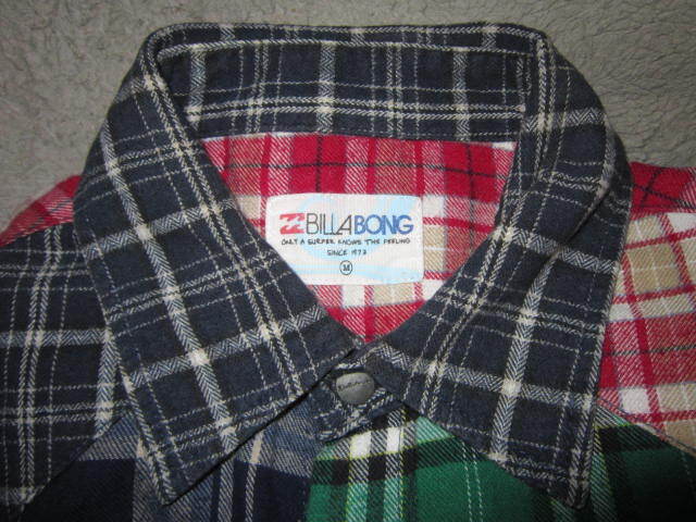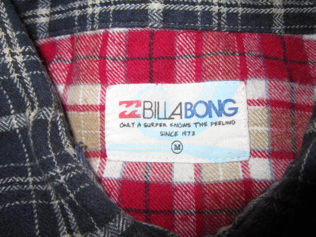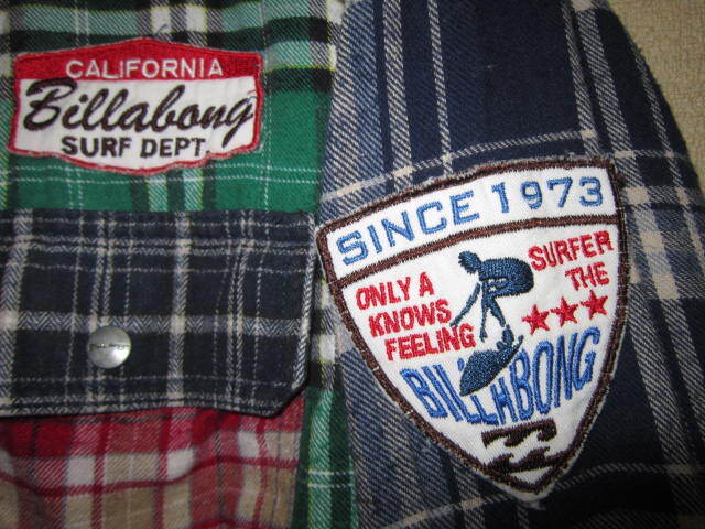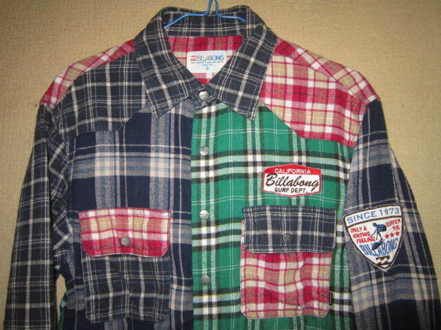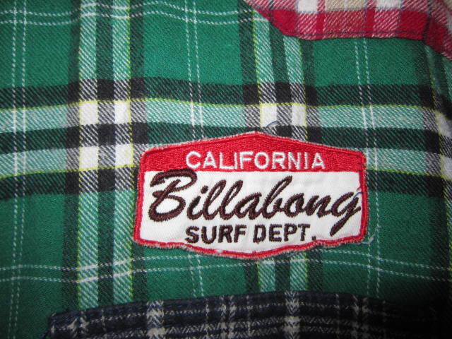 BILLABONG CALIFORNIA SURF 刺繍ワッペン クレイジー チェック 長袖 ネルシャツ M ビラボン カリフォルニア サーフ サーファー サーフィン