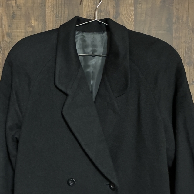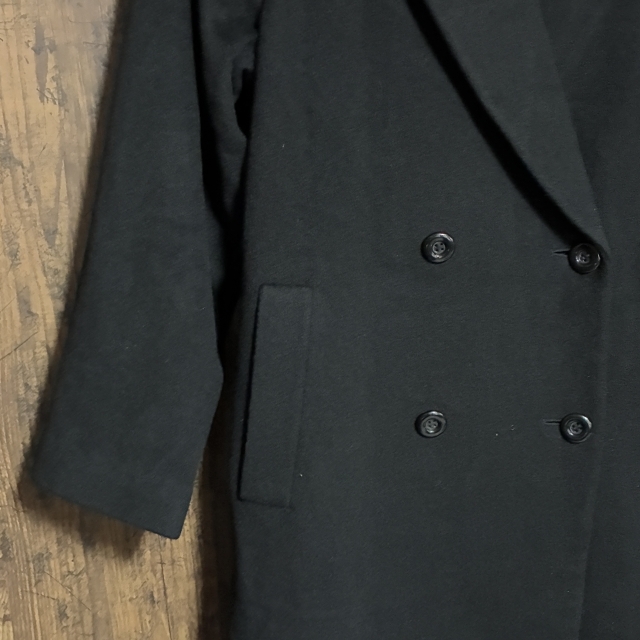 C48◇ブランド不明 | カシミヤ100% ロングコート ダブルブレスト ブラック レディース Fサイズ 中古品