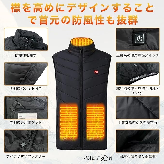 このベストがあれば、寒い朝の通勤や雪の降る日の外作業も、まるで暖房の中にいるような快適さで過ごせます。