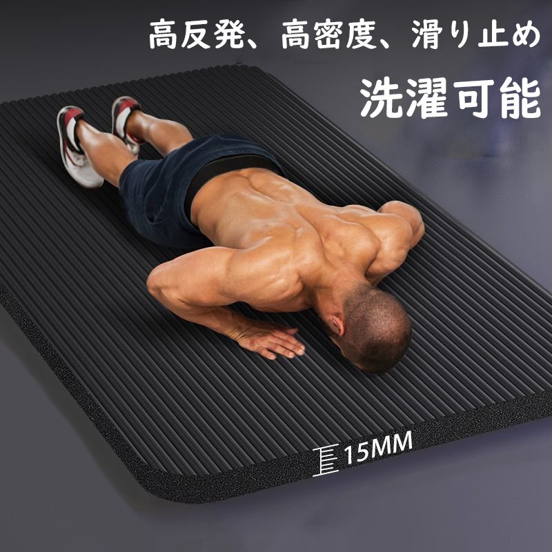 トレーニングマット 保護マット ヨガマット 厚手 大きい 防音 幅広 厚さ15mm 200cm 衝撃吸収 防水 筋トレマット hw687