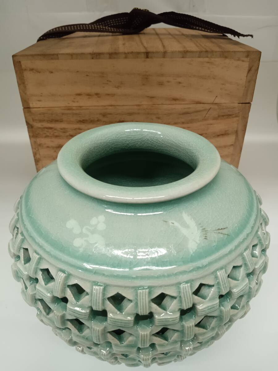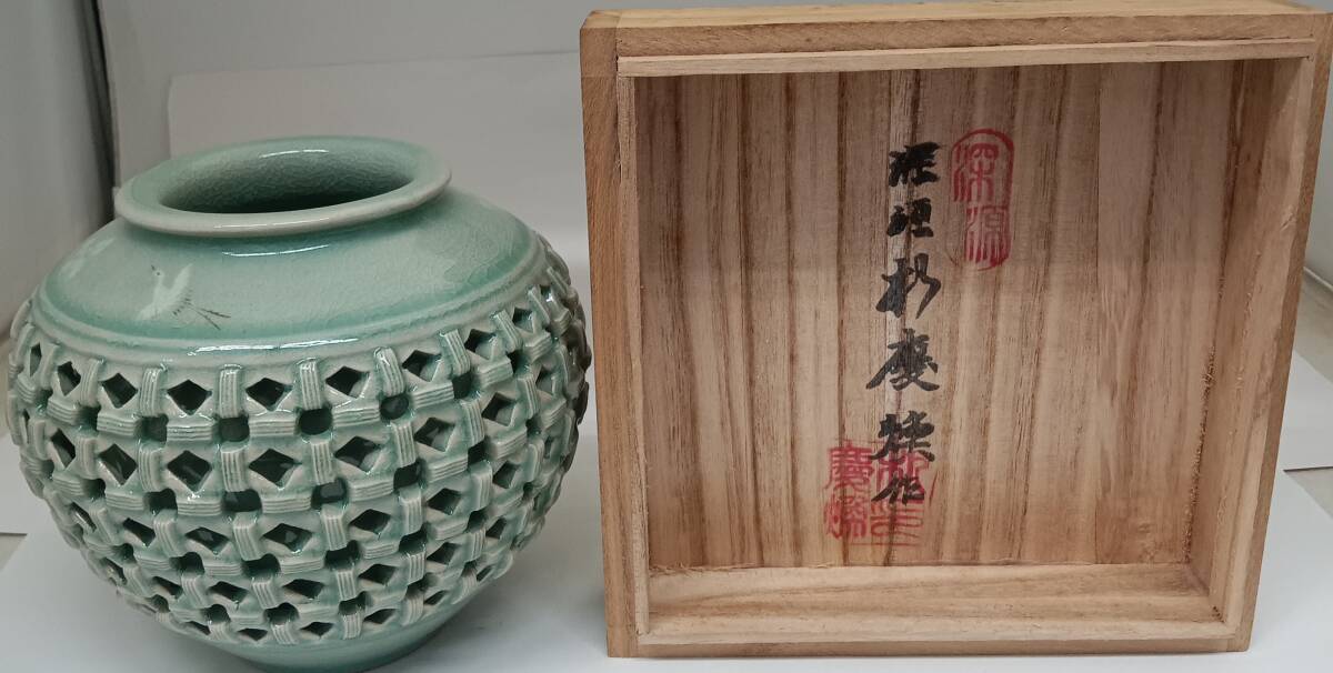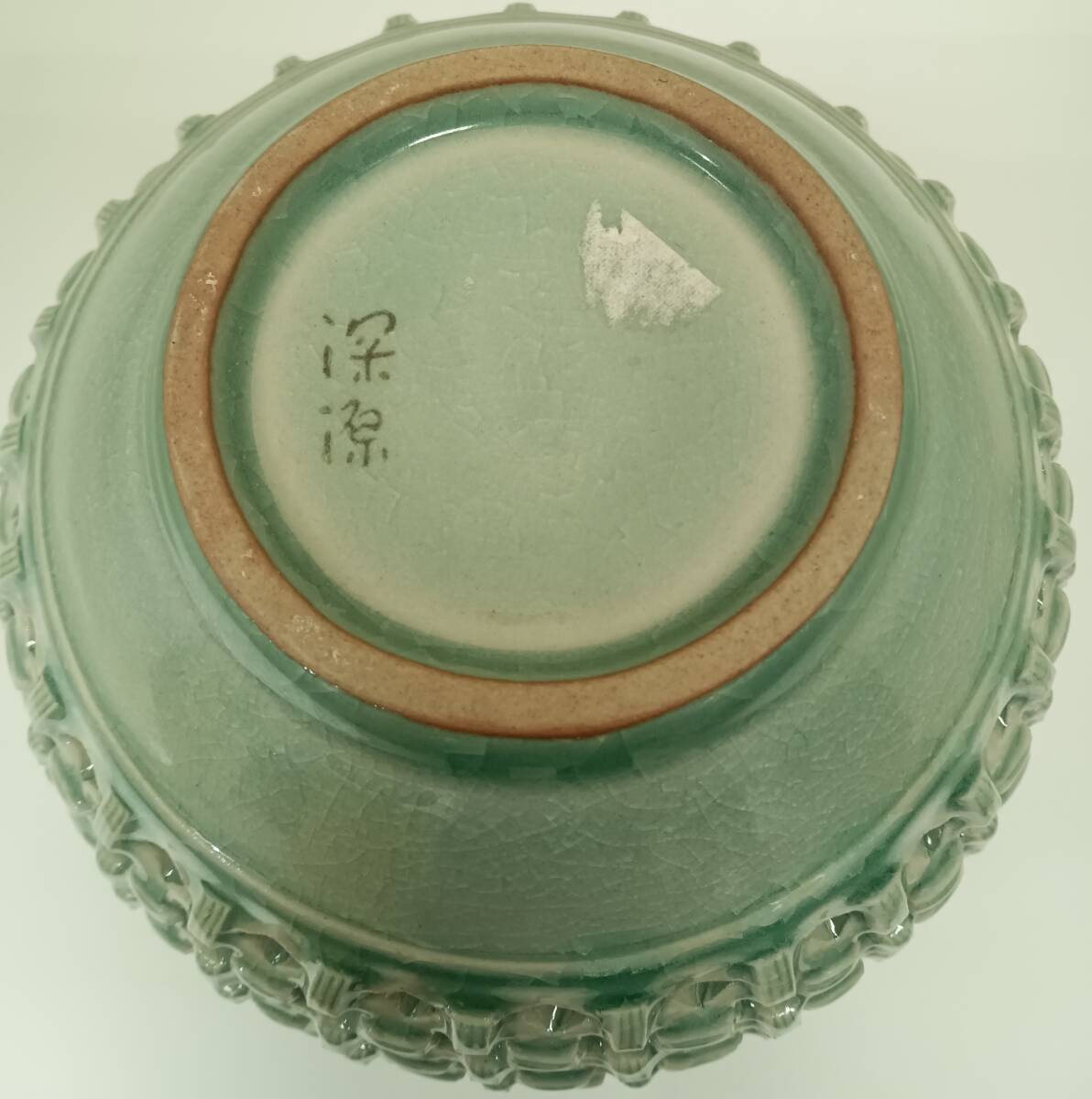 ☆きれいな貴重品☆ 青磁 深源 杉慶煥作 韓国 骨董品 花瓶 高さ約13cm 約1062g