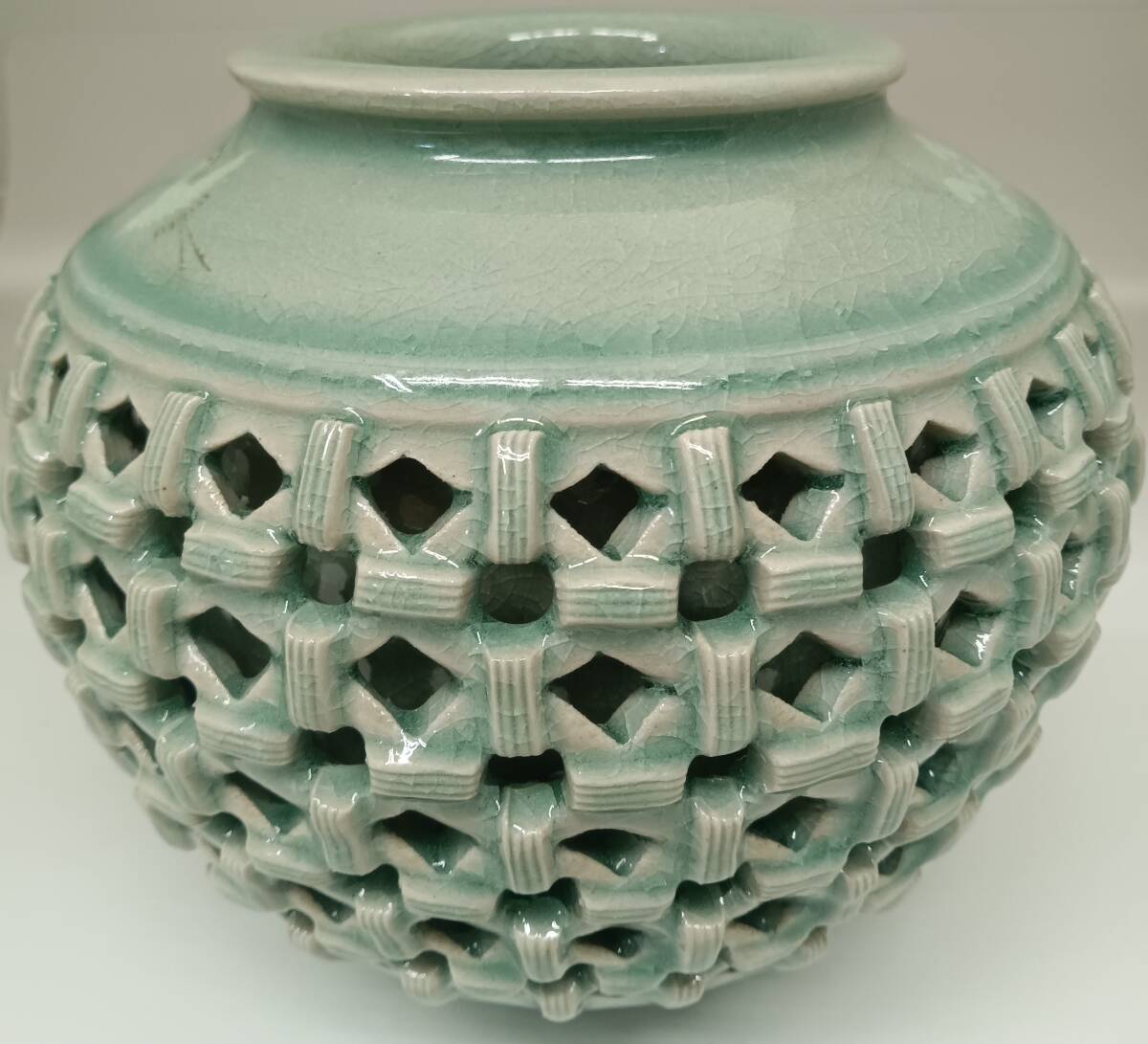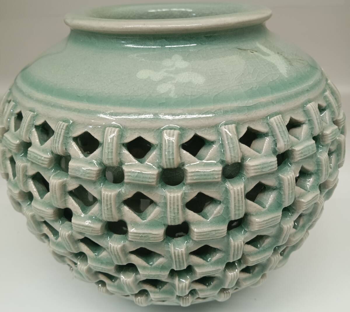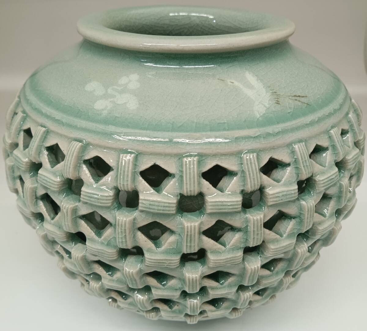 ☆きれいな貴重品☆ 青磁 深源 杉慶煥作 韓国 骨董品 花瓶 高さ約13cm 約1062g