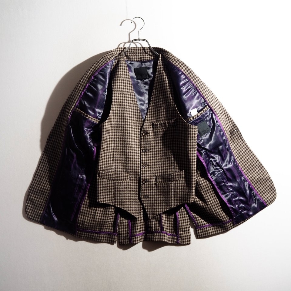 C4074P ▼T MICHAEL ティーマイケル▼ ウールサキソニー 3ピース スーツ ブラウン チェック 48 / ジャケット ベスト パンツ 秋冬 rb mks